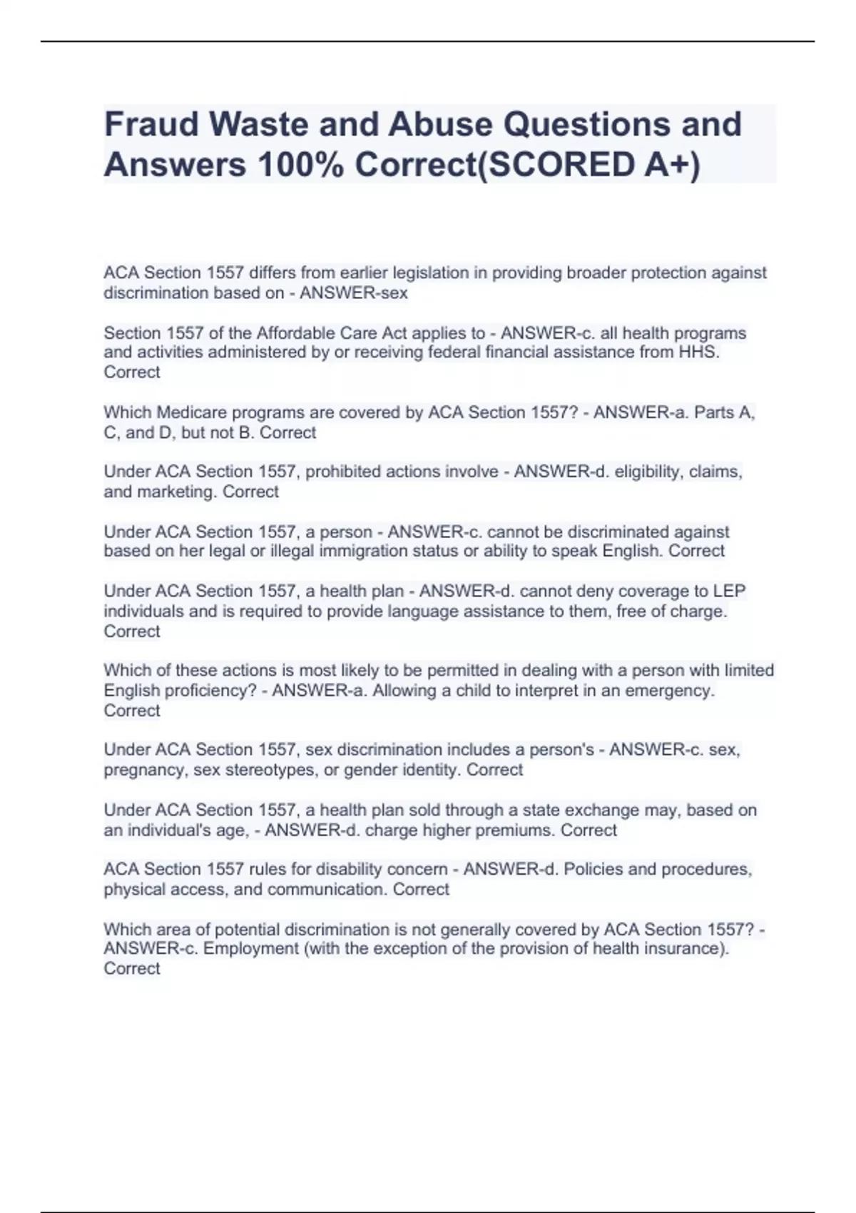 Fraud Waste and Abuse Questions and Answers 100% Correct(SCORED A+)