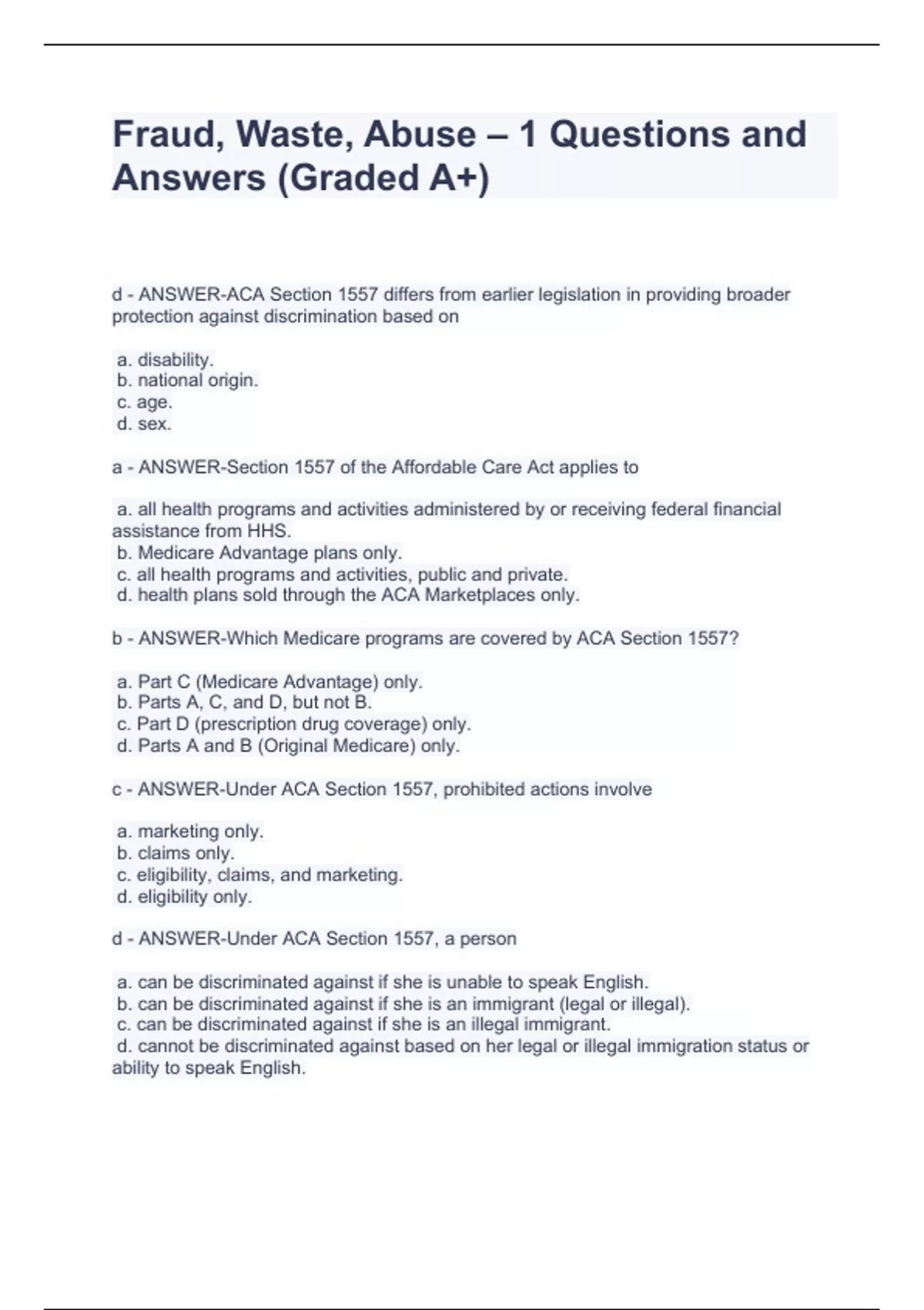 Fraud, Waste, Abuse – 1 Questions and Answers (Graded A+)Fraud, Waste, Abuse – 1 Questions and Answers (Graded A+)Fraud, Waste, Abuse – 1 Questions and Answers (Graded A+)Fraud, Waste, Abuse – 1 Questions and Answers (Graded A+)Fraud, Waste, Abuse – 1 Questions and Answers (Graded A+)Fraud, Waste, Abuse – 1 Questions and Answers (Graded A+)Fraud, Waste, Abuse – 1 Questions and Answers (Graded A+)Fraud, Waste, Abuse – 1 Questions and Answers (Graded A+)Fraud, Waste, Abuse – 1 Questions and Answers (Graded A+)Fraud, Waste, Abuse – 1 Questions and Answers (Graded A+)Fraud, Waste, Abuse – 1 Questions and Answers (Graded A+)Fraud, Waste, Abuse – 1 Questions and Answers (Graded A+)Fraud, Waste, Abuse – 1 Questions and Answers (Graded A+)Fraud, Waste, Abuse – 1 Questions and Answers (Graded A+)