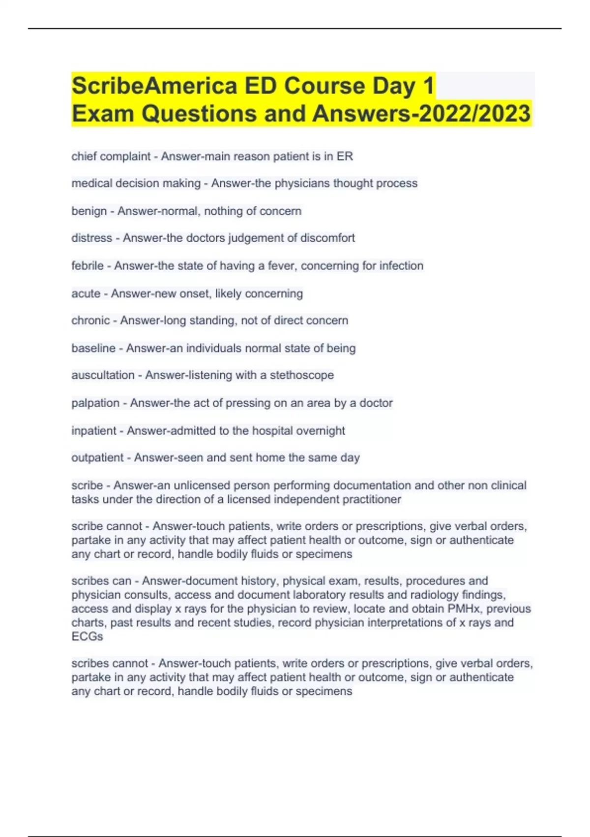 scribe - Answer-an unlicensed person performing documentation and other non clinical