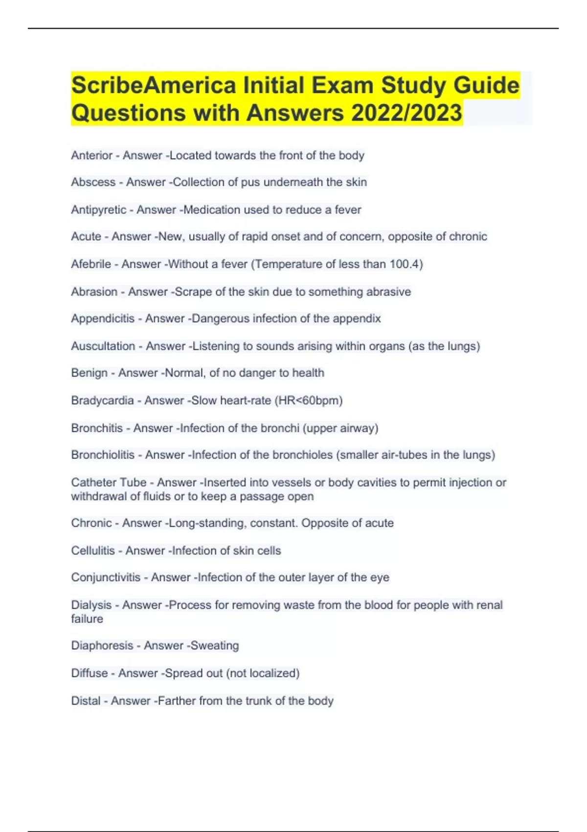 Afebrile - Answer -Without a fever (Temperature of less than 100.4)