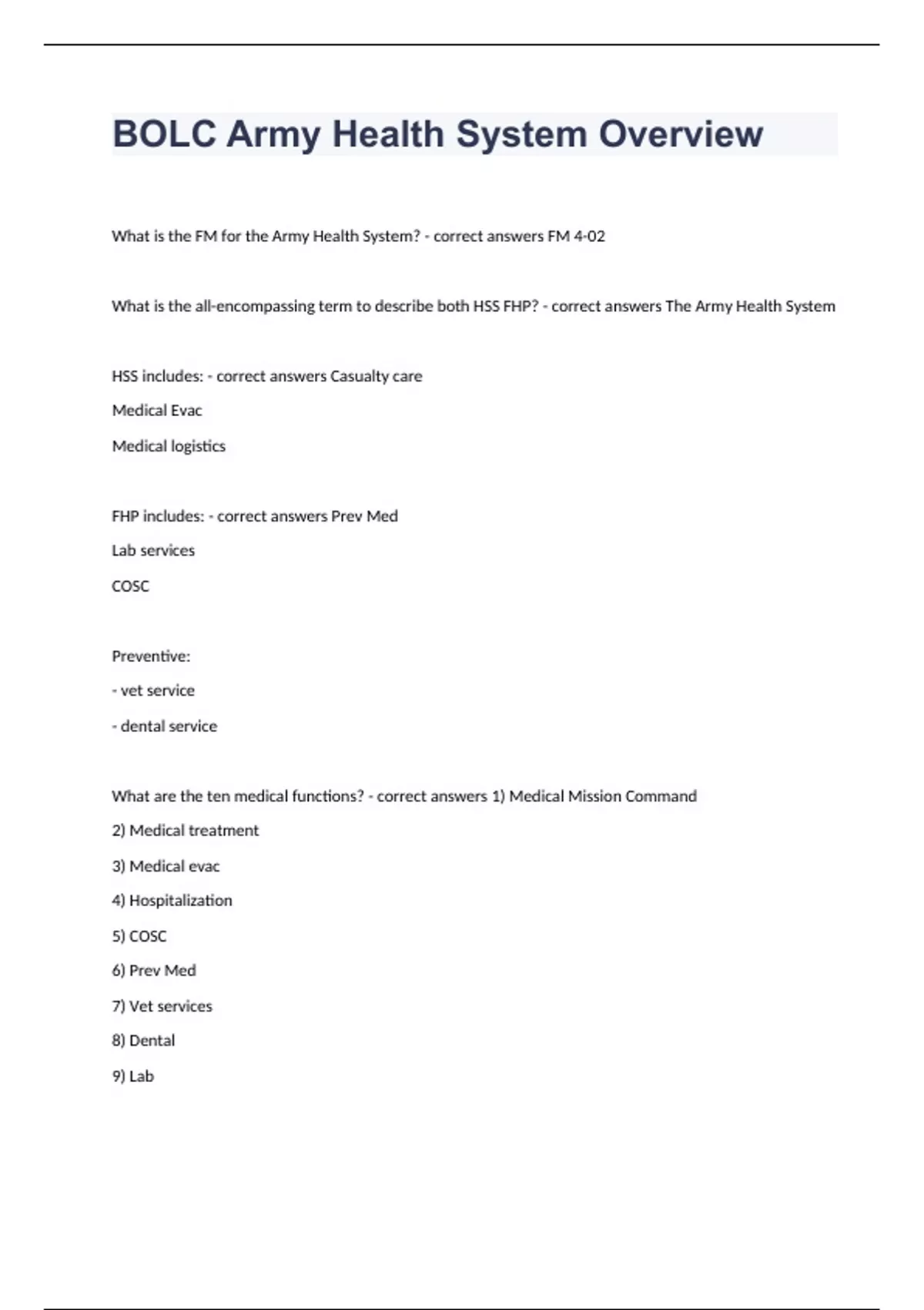 BOLC Army Health System Overview fully solved rated A+