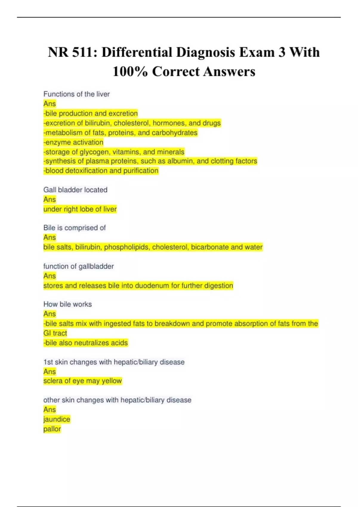 nr511 differential diagnosis exam 2 with 100 co