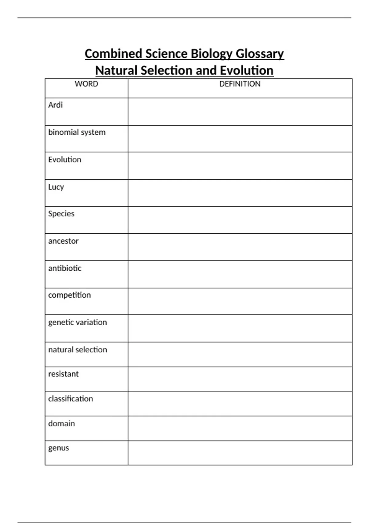 This worksheet is designed to make sure you know all you key terminolgy you are going to use in combined sciences.