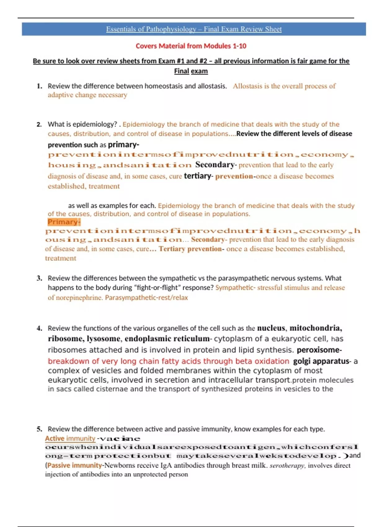 , Essentials of Pathophysiology – Final Exam Review Sheet