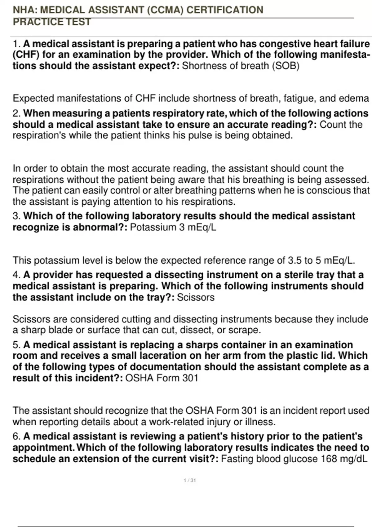NHA: MEDICAL ASSISTANT CERTIFICATION PRACTI