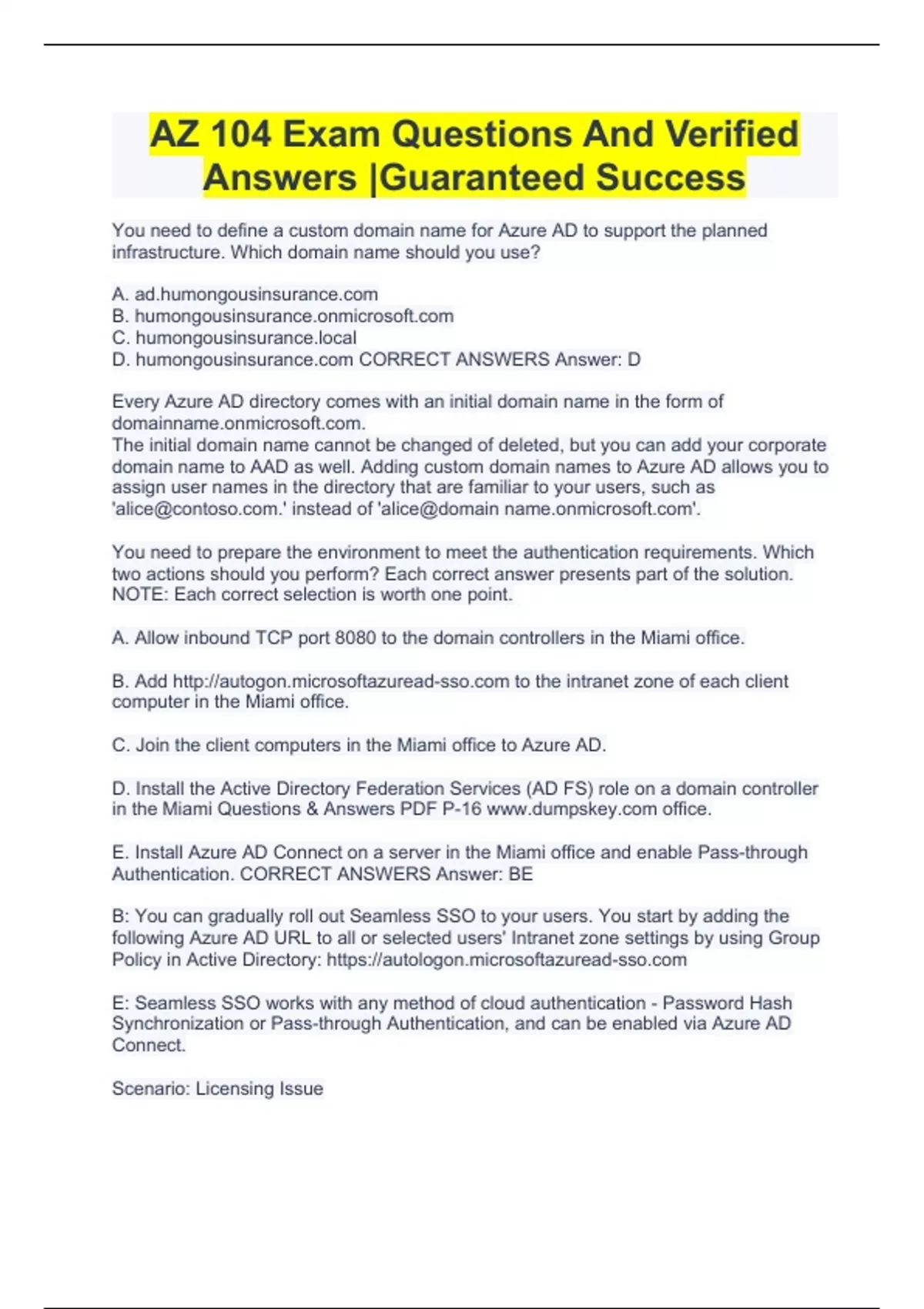 AZ 104 Exam Questions And Verified Answers |Guaranteed Success