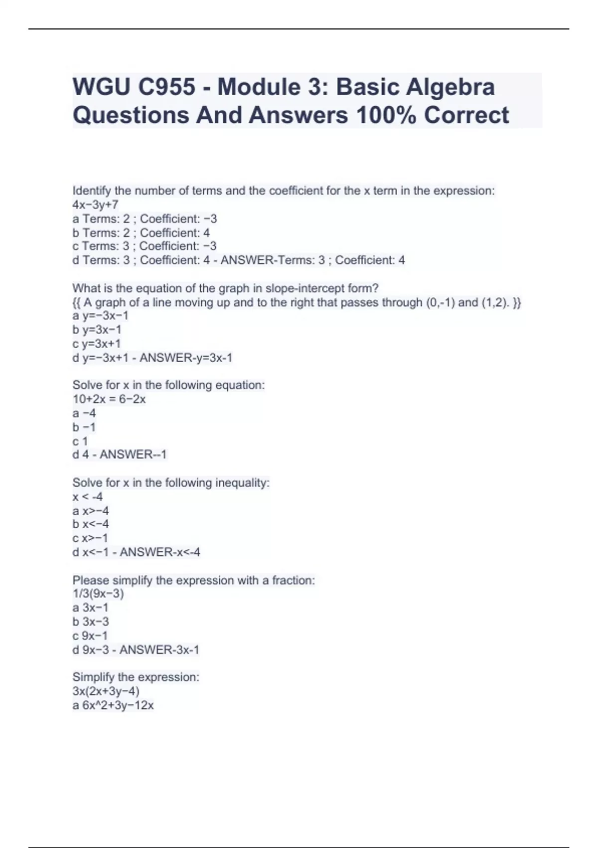 WGU C955 - Module 3: Basic Algebra Questions And Answers 100% Correct WGU C955 - Module 3: Basic Algebra Questions And Answers 100% Correct WGU C955 - Module 3: Basic Algebra Questions And Answers 100% Correct WGU C955 - Module 3: Basic Algebra Questions And Answers 100% Correct WGU C955 - Module 3: Basic Algebra Questions And Answers 100% Correct WGU C955 - Module 3: Basic Algebra Questions And Answers 100% Correct WGU C955 - Module 3: Basic Algebra Questions And Answers 100% Correct WGU C955 - Module 3: Basic Algebra Questions And Answers 100% Correct WGU C955 - Module 3: Basic Algebra Questions And Answers 100% Correct WGU C955 - Module 3: Basic Algebra Questions And Answers 100% Correct WGU C955 - Module 3: Basic Algebra Questions And Answers 100% Correct WGU C955 - Module 3: Basic Algebra Questions And Answers 100% Correct WGU C955 - Module 3: Basic Algebra Questions And Answers 100% Correct WGU C955 - Module 3: Basic Algebra Questions And Answers 100% Correct WGU C955 - Module 3: Basic Algebra Questions And Answers 100% Correct WGU C955 - Module 3: Basic Algebra Questions And Answers 100% Correct
