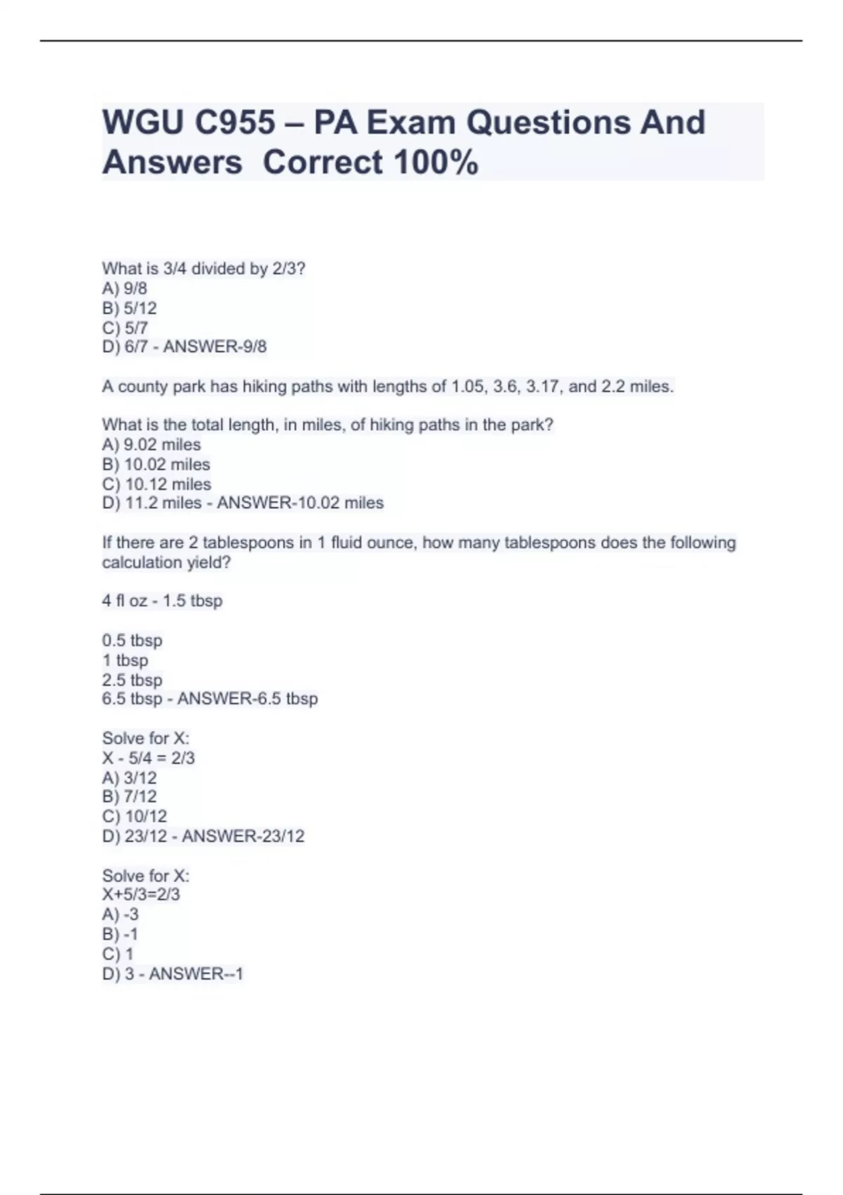WGU C955 – PA Exam Questions And Answers Correct 100%