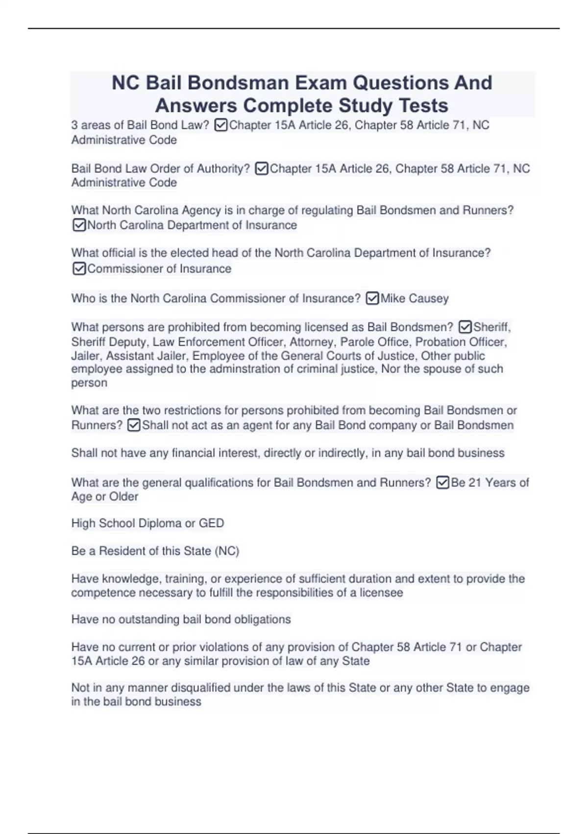 NC Bail Bondsman Exam Questions And Answers Complete Study Tests