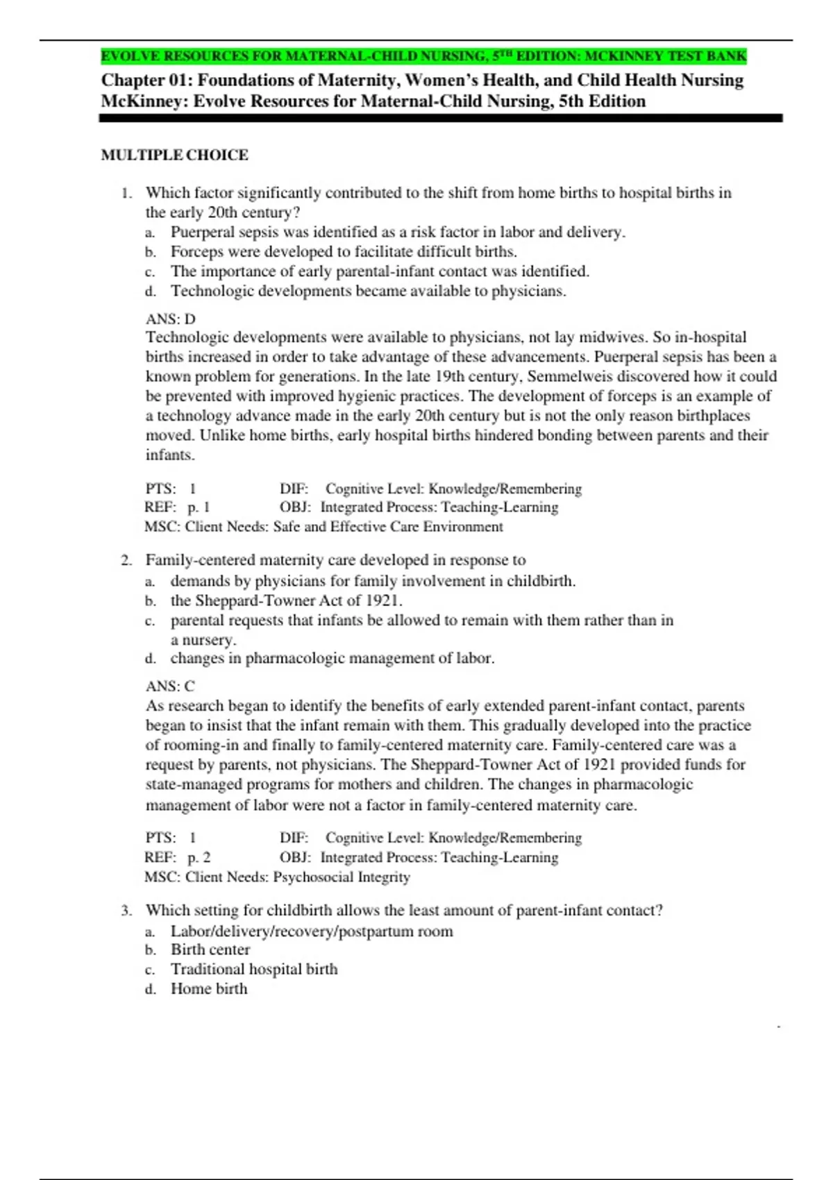 Chapter 01: Foundations of Maternity, Women’s Health, and Child Health Nursing McKinney: Evolve Resources for Maternal-Child Nursing, 5th Edition