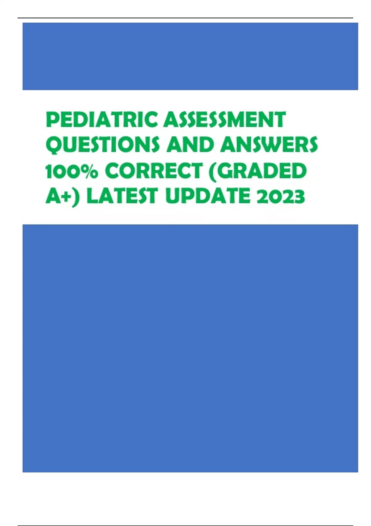 PEDIATRIC ASSESSMENT QUESTIONS AND ANSWERS 100% CORRECT (GRADED A+) LATEST UPDATE 2023