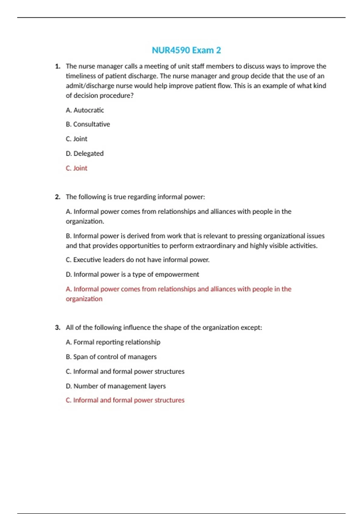 NUR 4590 / NUR4590 Exam 2: Professional Identity of the Nurse Leader Exam 2 Review (Latest 2023/2024) Rasmussen