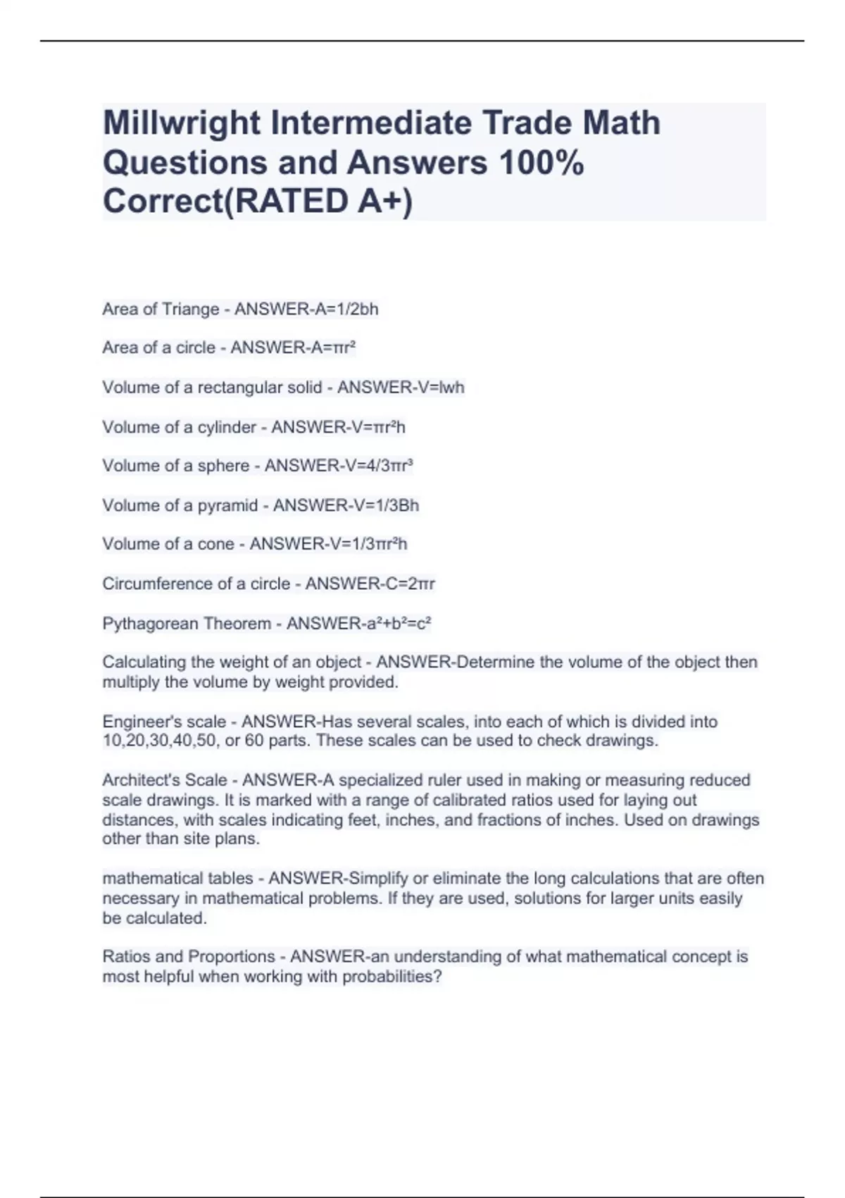 Millwright Intermediate Trade Math Questions and Answers 100% Correct(RATED A+)