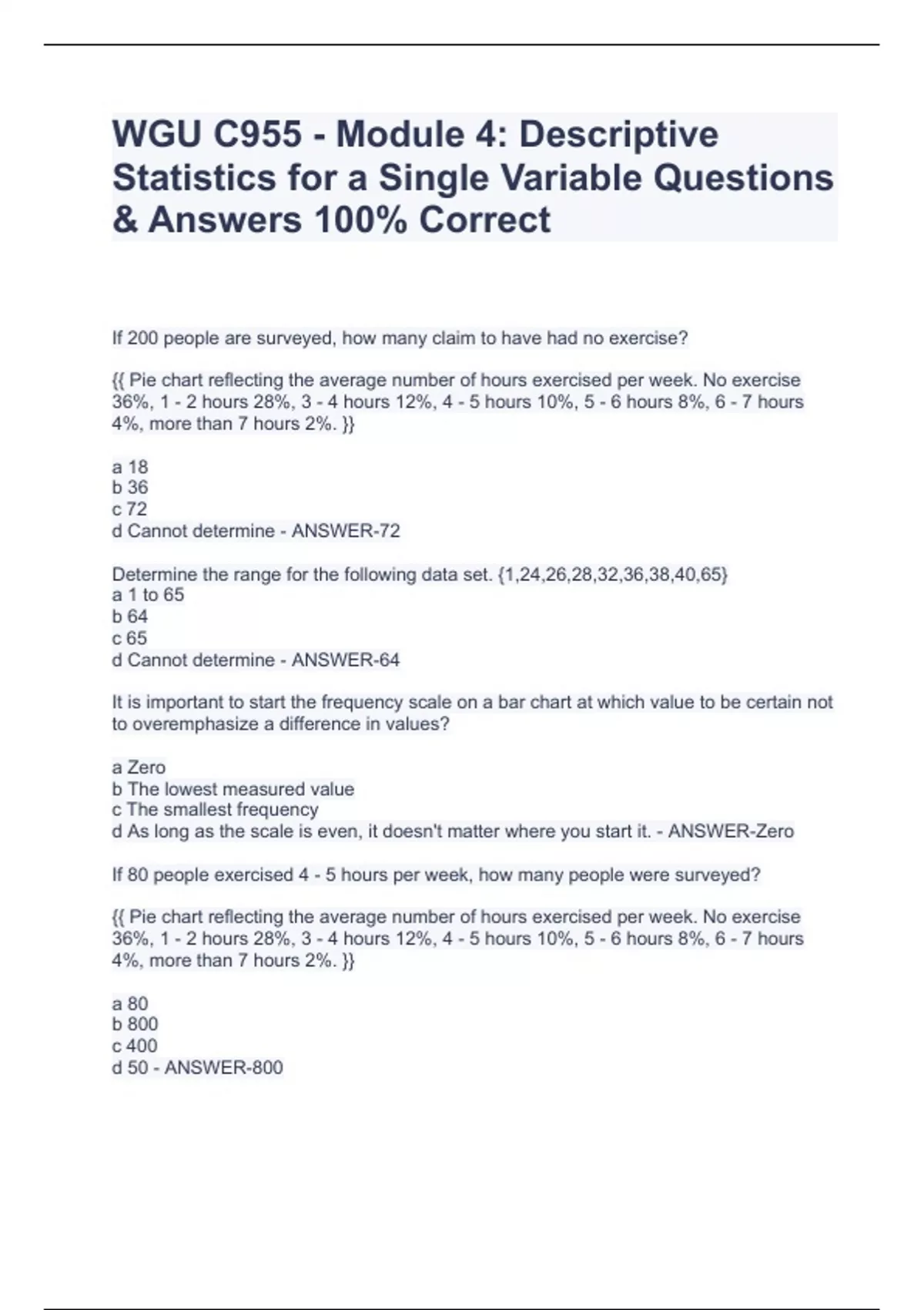 WGU C955 - Module 4: Descriptive Statistics for a Single Variable Questions & Answers 100% Correct