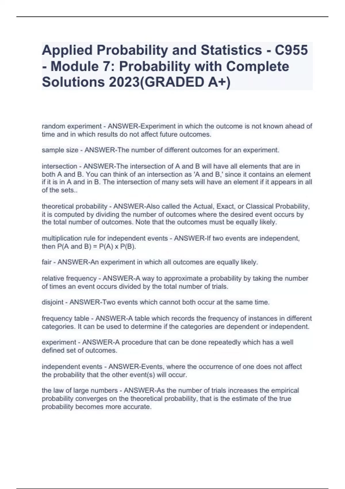 Applied Probability and Statistics - C955 - Module 7: Probability with Complete Solutions 2023(GRADED A+)
