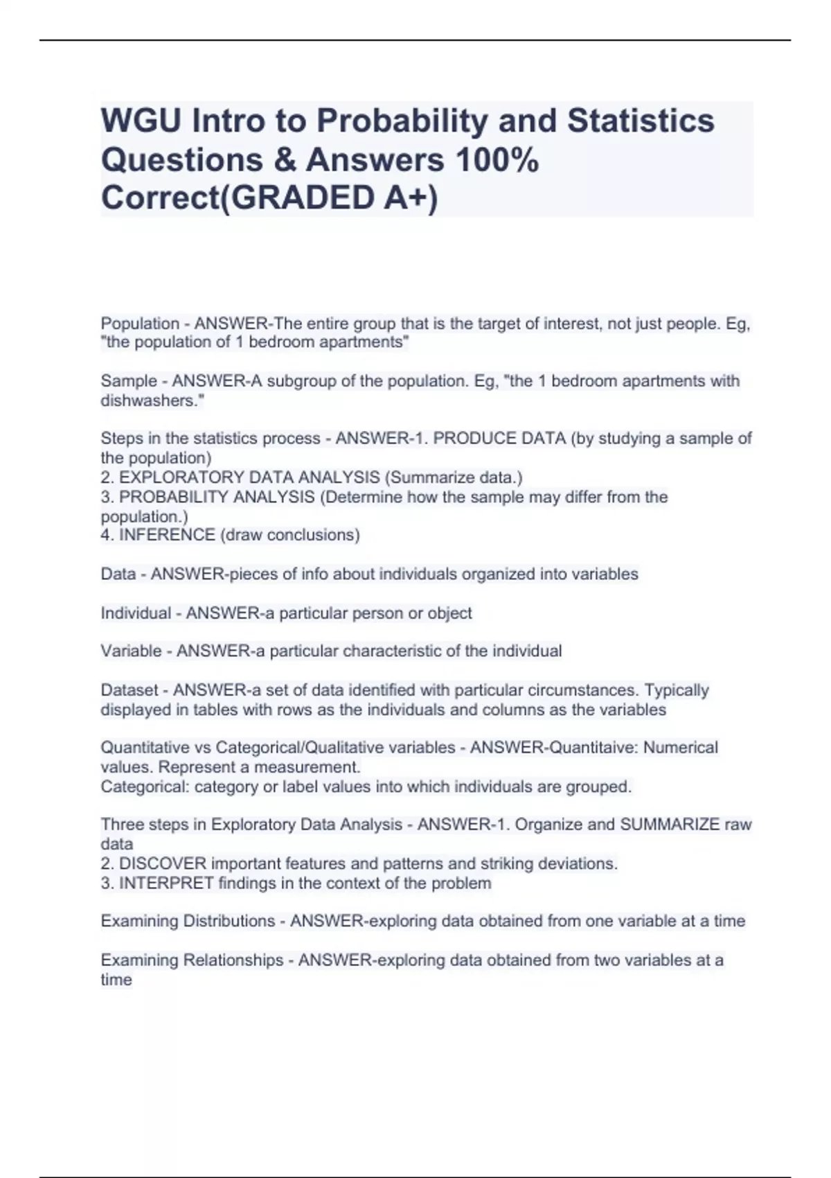 WGU Intro to Probability and Statistics Questions & Answers 100% Correct(GRADED A+)