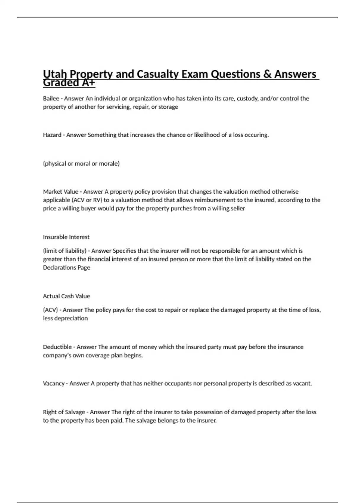 Utah Property and Casualty Exam Questions & Answers Graded A+