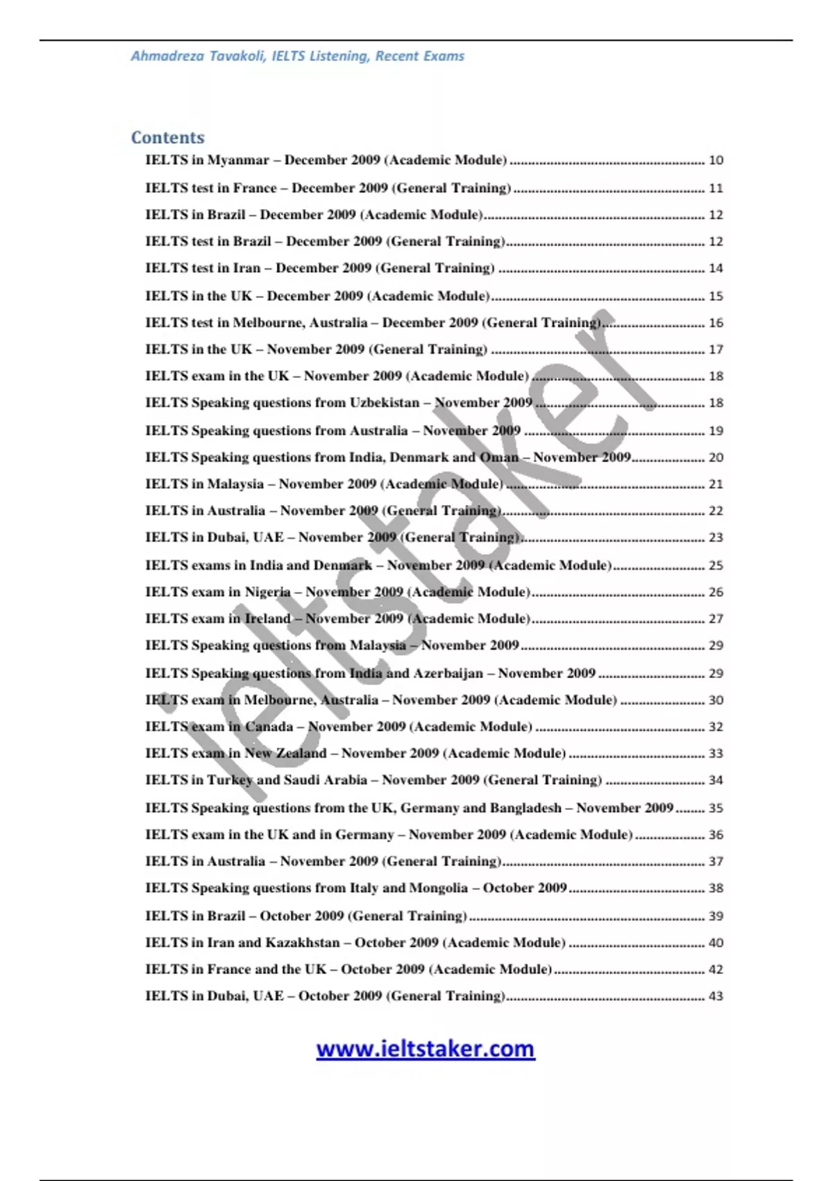 IELTS in Dubai, UAE – October 2009 (General Training) ...................................................... 43