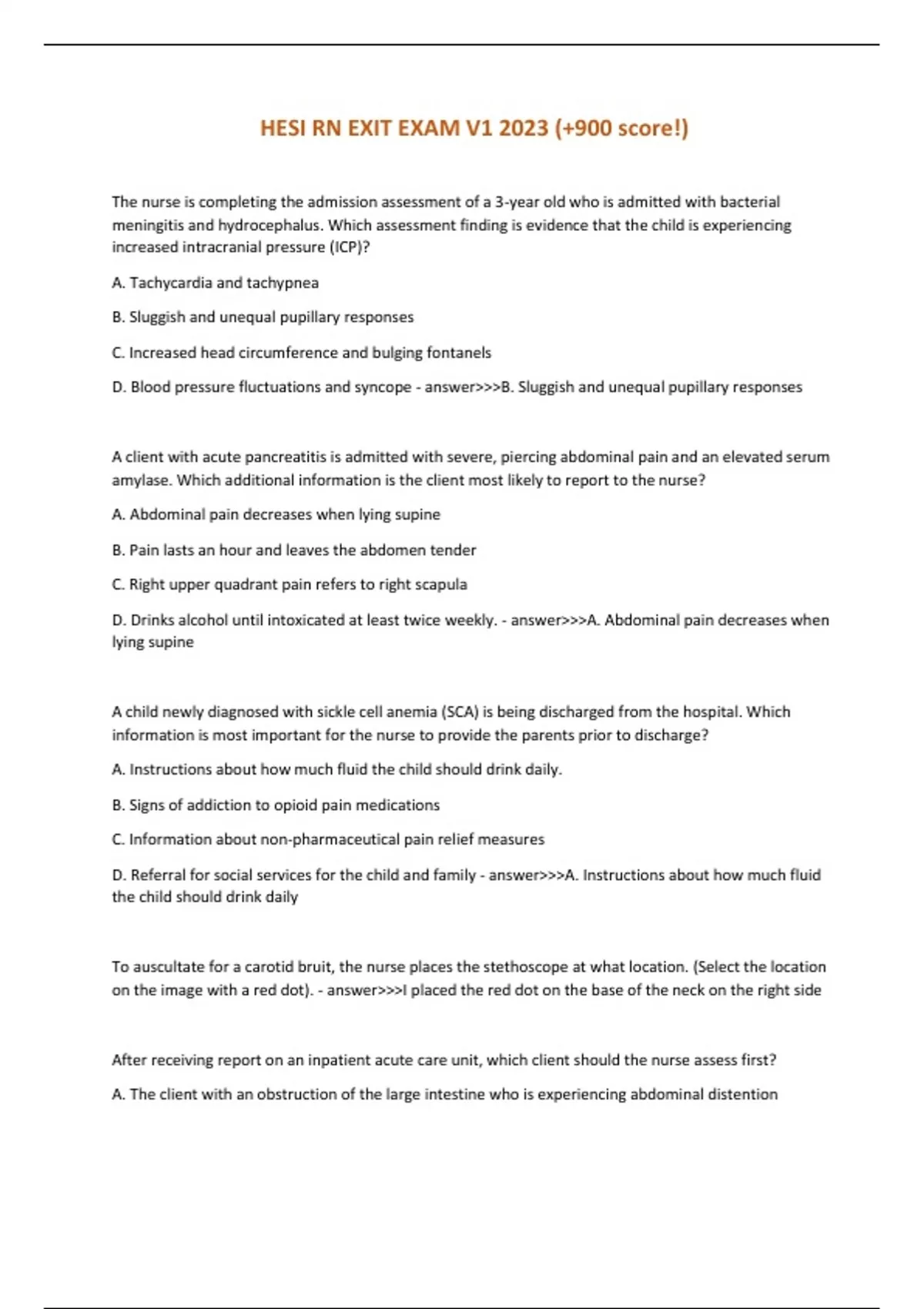 HESI RN EXIT EXAM V1 2023 WITH ANSWERS