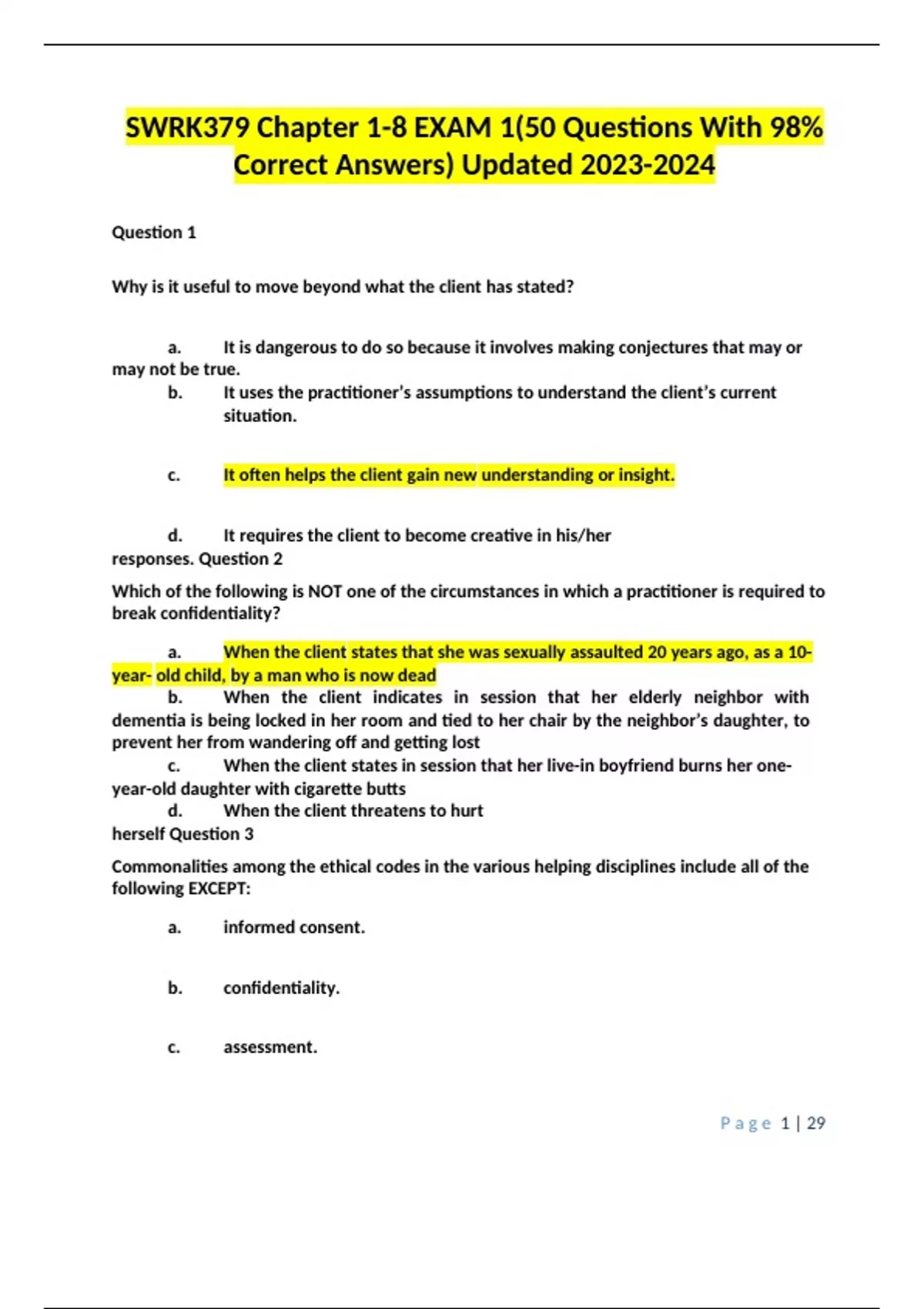 swrk379 chapter 1 8 exam 150 questions with 98 c