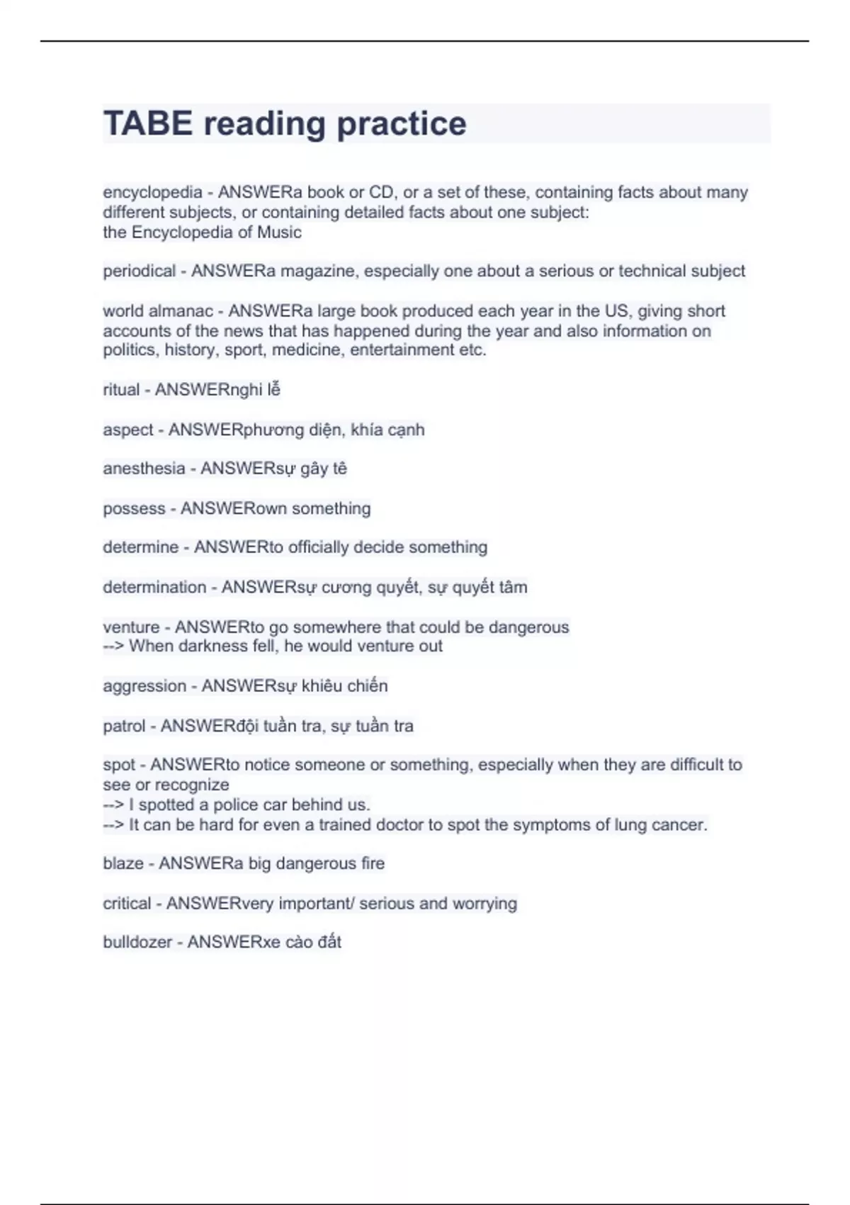 TABE reading practice.