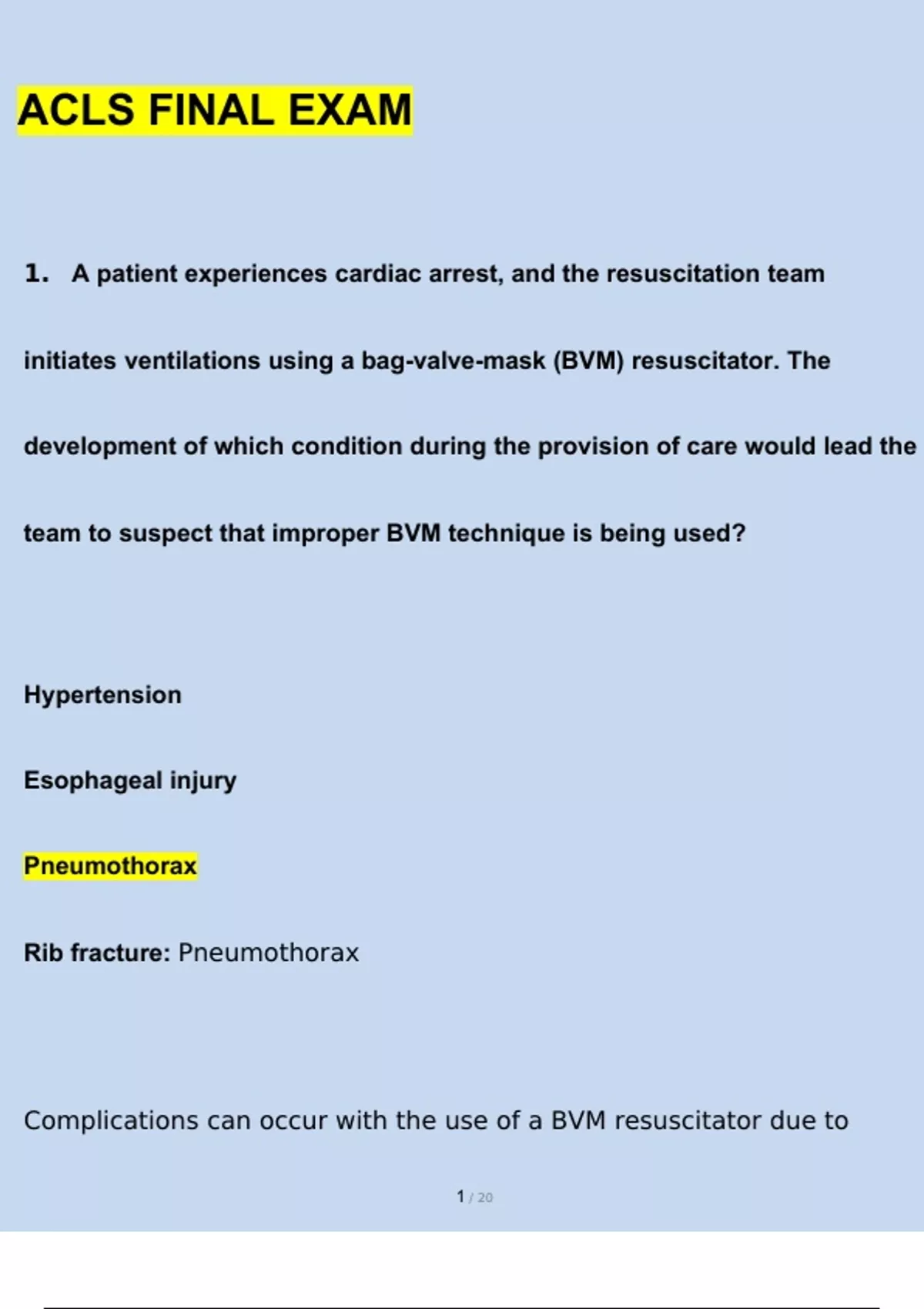 ACLS Final Exam (2023/2024) Newest Questions and Answers (Verified Answers)