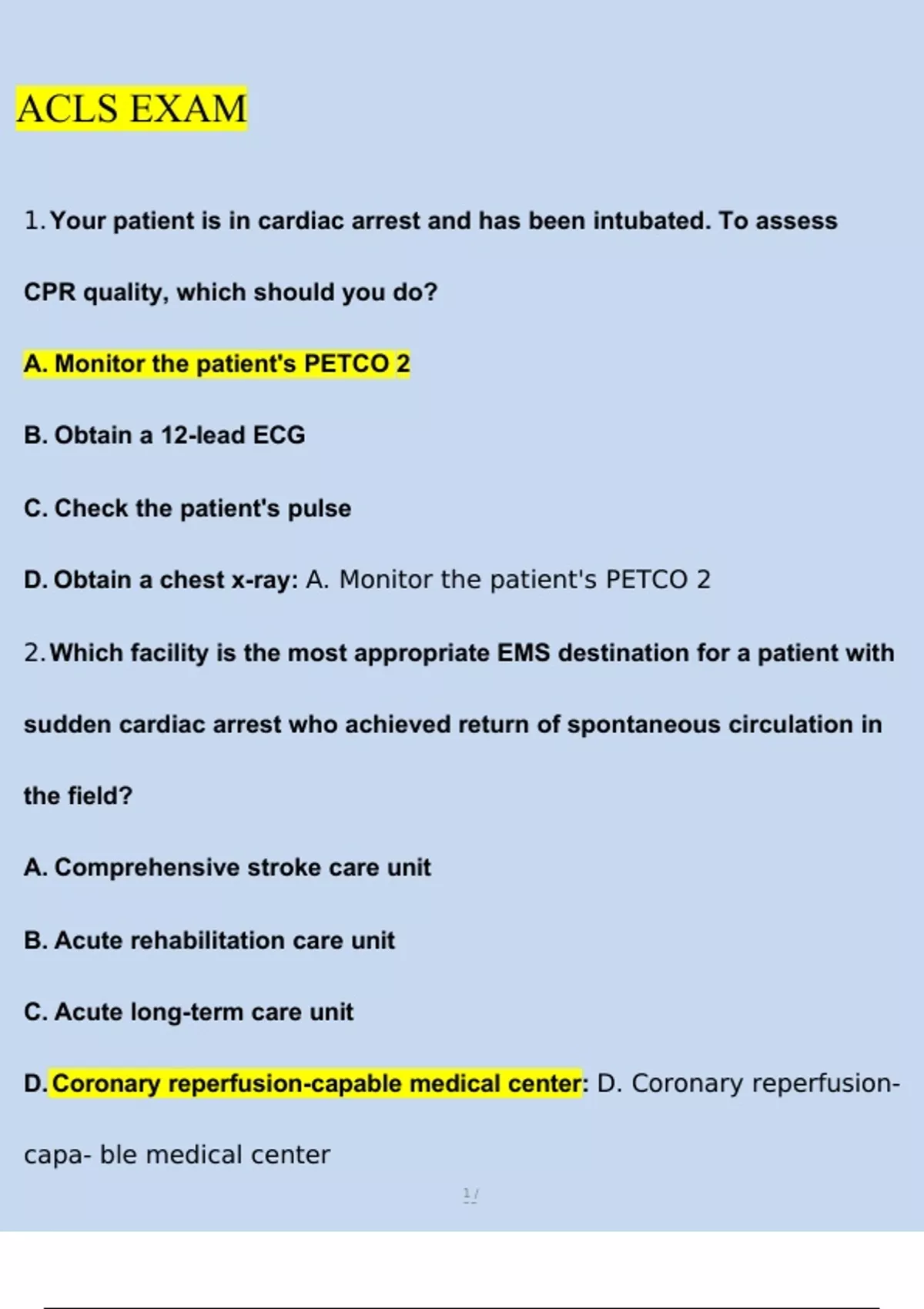 ACLS Exam (2023/2024) Newest Questions and Answers (Verified Answers)