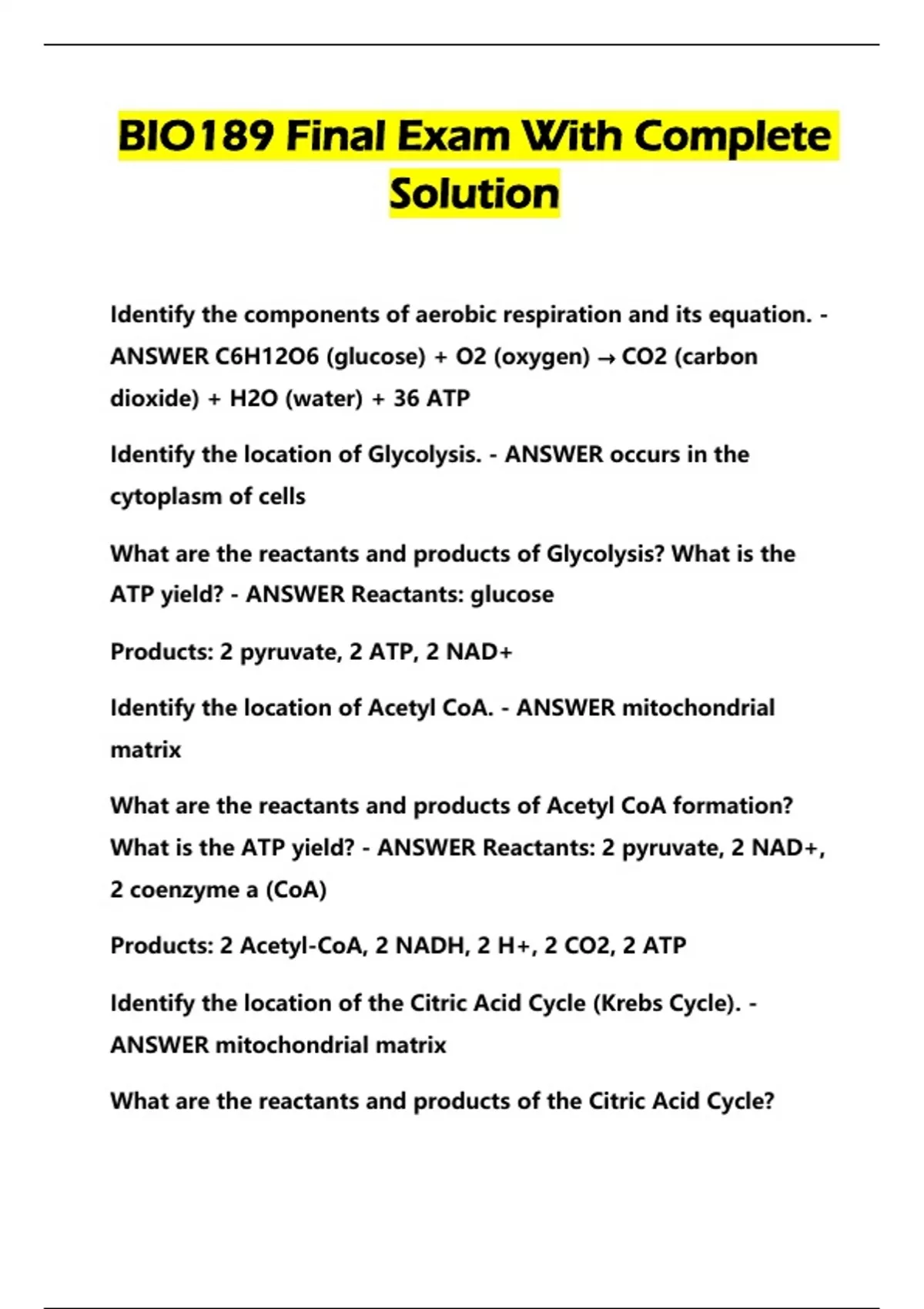 BIO189 BUNDLED EXAMS WITH SOLUTION