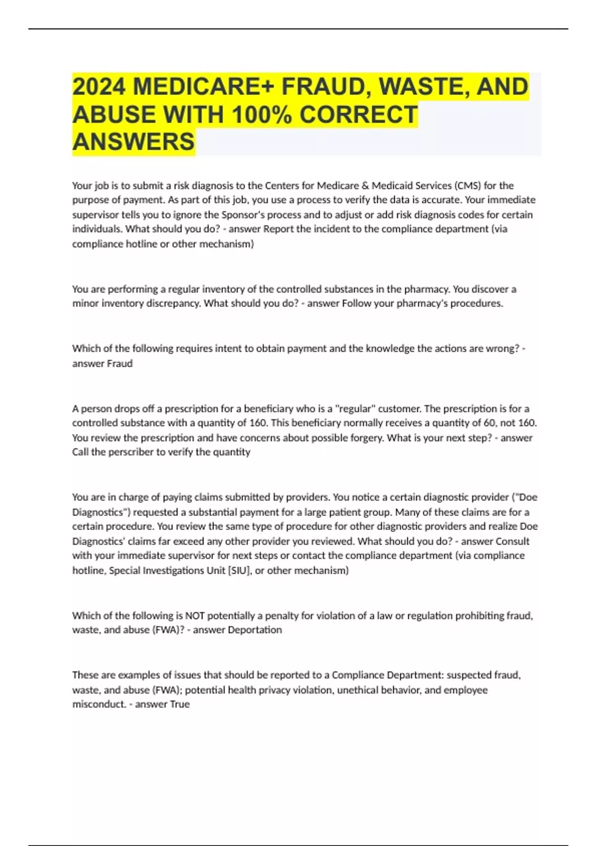 2024 MEDICARE+ FRAUD, WASTE, AND ABUSE WITH 100% CORRECT ANSWERS.