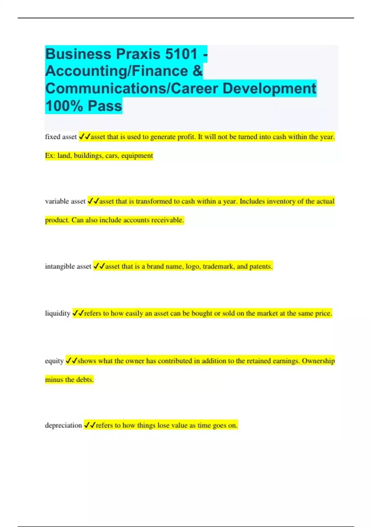 Business Praxis 5101 - Accounting/Finance & Communications/Career Development 100% Pass