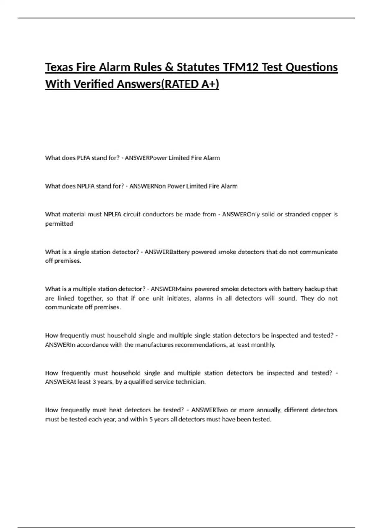 Texas Fire Alarm Rules & Statutes TFM12 Test Questions With Verified Answers(RATED A+) Texas Fire Alarm Rules & Statutes TFM12 Test Questions With Verified Answers(RATED A+) Texas Fire Alarm Rules & Statutes TFM12 Test Questions With Verified Answers(RATED A+) Texas Fire Alarm Rules & Statutes TFM12 Test Questions With Verified Answers(RATED A+) Texas Fire Alarm Rules & Statutes TFM12 Test Questions With Verified Answers(RATED A+) Texas Fire Alarm Rules & Statutes TFM12 Test Questions With Verified Answers(RATED A+) Texas Fire Alarm Rules & Statutes TFM12 Test Questions With Verified Answers(RATED A+) Texas Fire Alarm Rules & Statutes TFM12 Test Questions With Verified Answers(RATED A+)