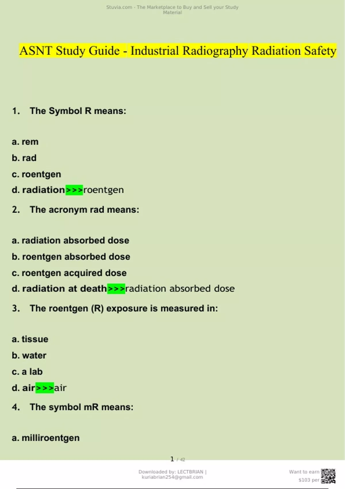 ASNT study guide industrial radiography radiation safety (2024/2025) Newest Questions and Answers (Verified Answers)