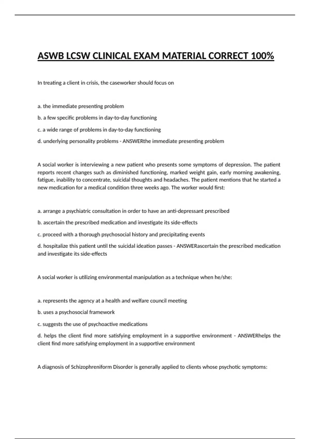 ASWB LCSW CLINICAL EXAM MATERIAL CORRECT 100% ASWB LCSW CLINICAL EXAM MATERIAL CORRECT 100% ASWB LCSW CLINICAL EXAM MATERIAL CORRECT 100% ASWB LCSW CLINICAL EXAM MATERIAL CORRECT 100% ASWB LCSW CLINICAL EXAM MATERIAL CORRECT 100% ASWB LCSW CLINICAL EXAM MATERIAL CORRECT 100% ASWB LCSW CLINICAL EXAM MATERIAL CORRECT 100% ASWB LCSW CLINICAL EXAM MATERIAL CORRECT 100% ASWB LCSW CLINICAL EXAM MATERIAL CORRECT 100% ASWB LCSW CLINICAL EXAM MATERIAL CORRECT 100% ASWB LCSW CLINICAL EXAM MATERIAL CORRECT 100% ASWB LCSW CLINICAL EXAM MATERIAL CORRECT 100% ASWB LCSW CLINICAL EXAM MATERIAL CORRECT 100% ASWB LCSW CLINICAL EXAM MATERIAL CORRECT 100% ASWB LCSW CLINICAL EXAM MATERIAL CORRECT 100%