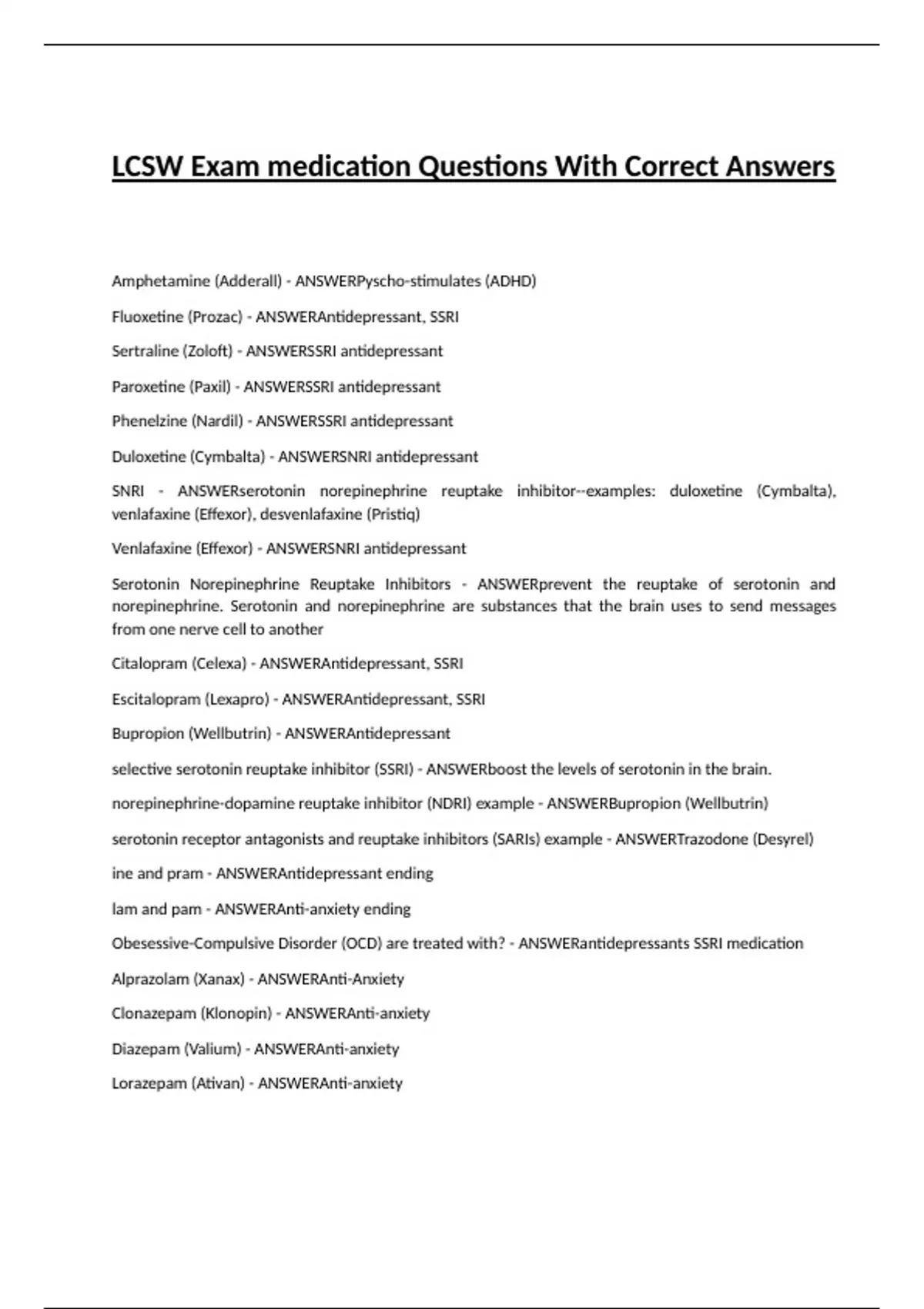 LCSW Exam medication Questions With Correct Answers