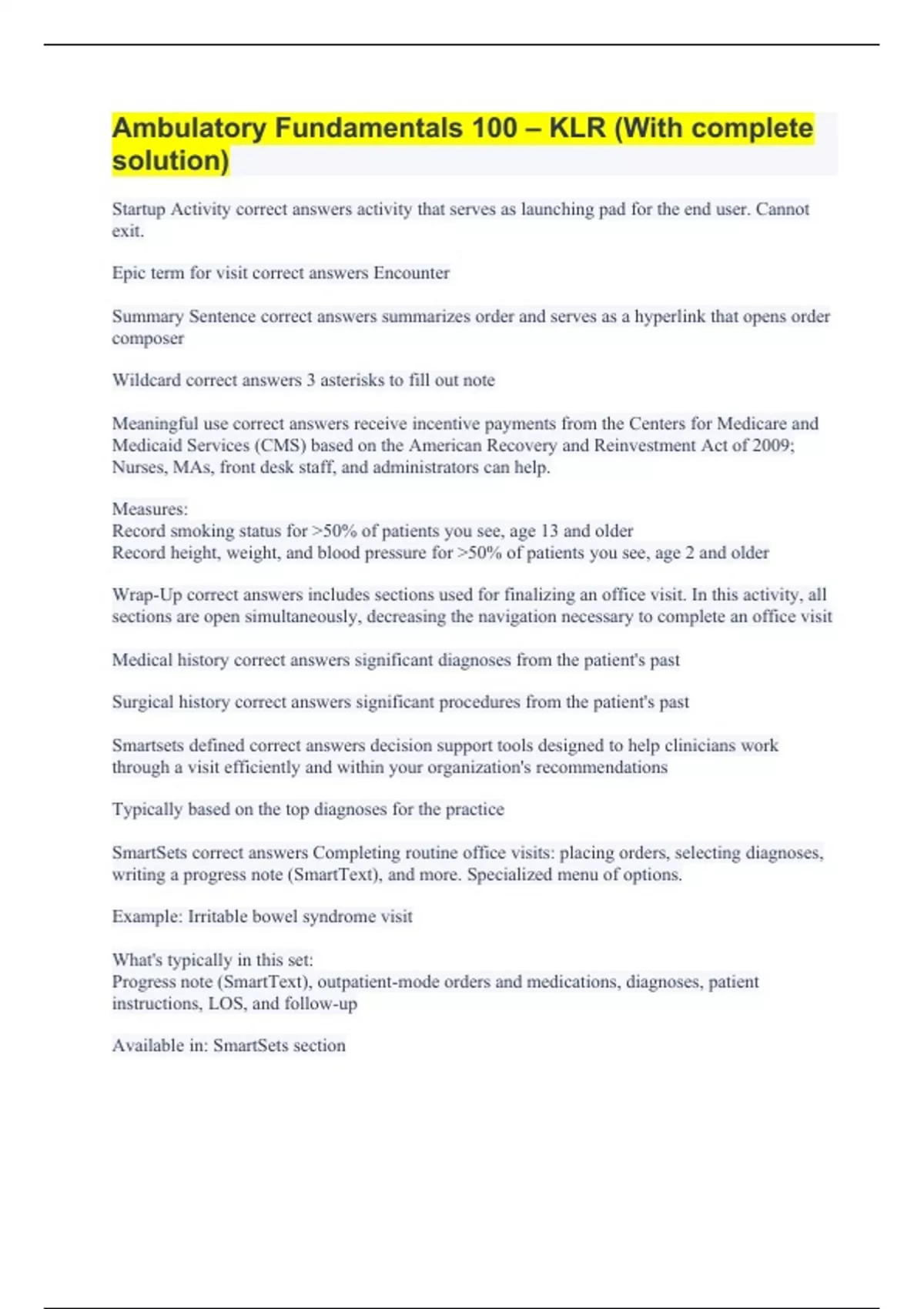 Ambulatory Fundamentals 100 – KLR (With complete solution)