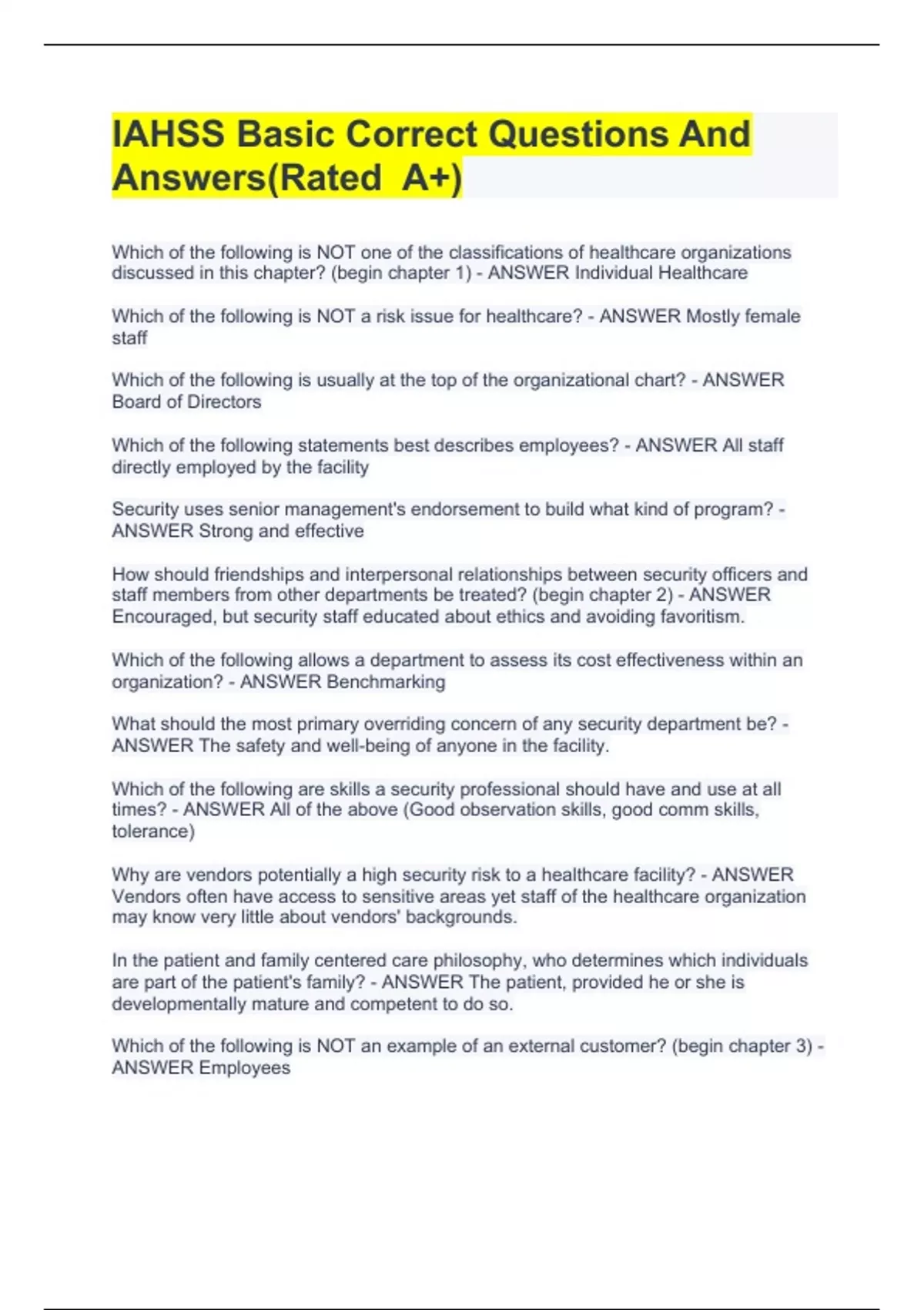 IAHSS Basic Correct Questions And Answers(Rated A+)