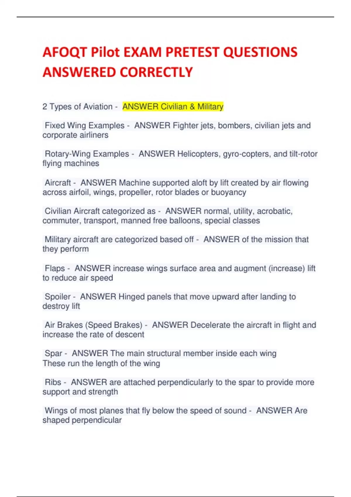 AFOQT Pilot EXAM PRETEST QUESTIONS ANSWERED CORRECTLY