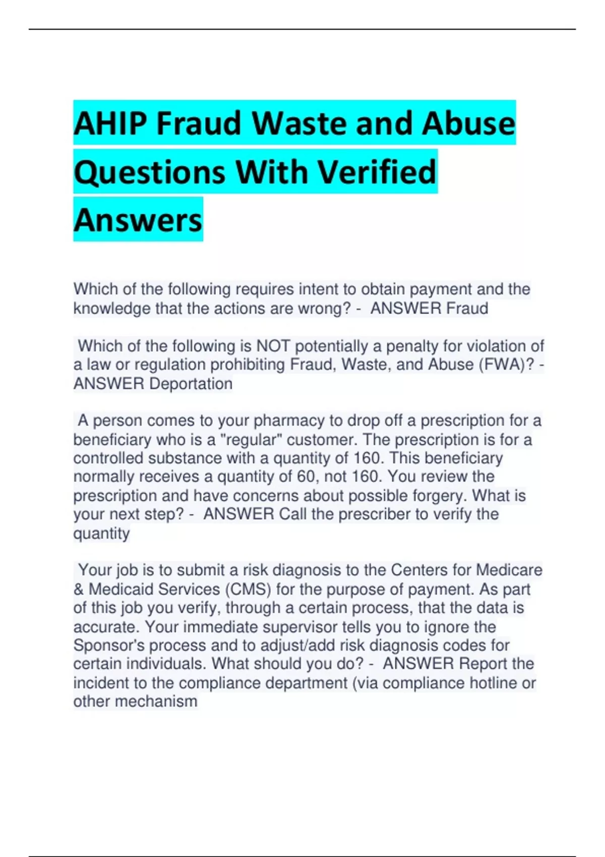 AHIP Fraud Waste and Abuse Questions With Verified Answers