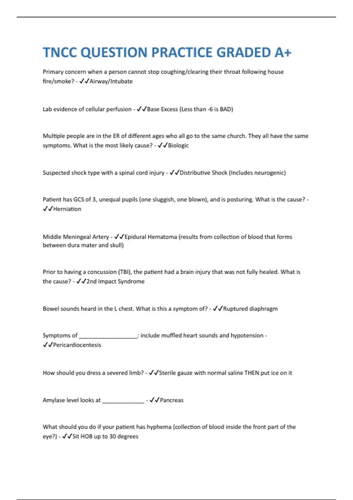 TNCC QUESTION PRACTICE GRADED A+