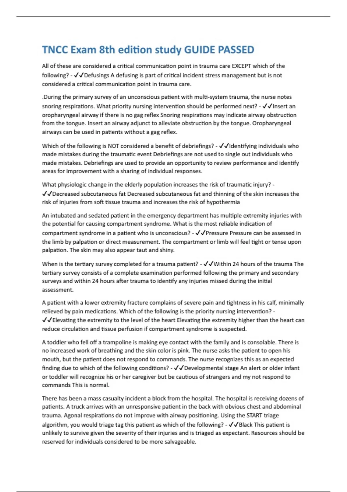 Which of the following is NOT considered a benefit of debriefings? - ✔✔Identifying individuals who