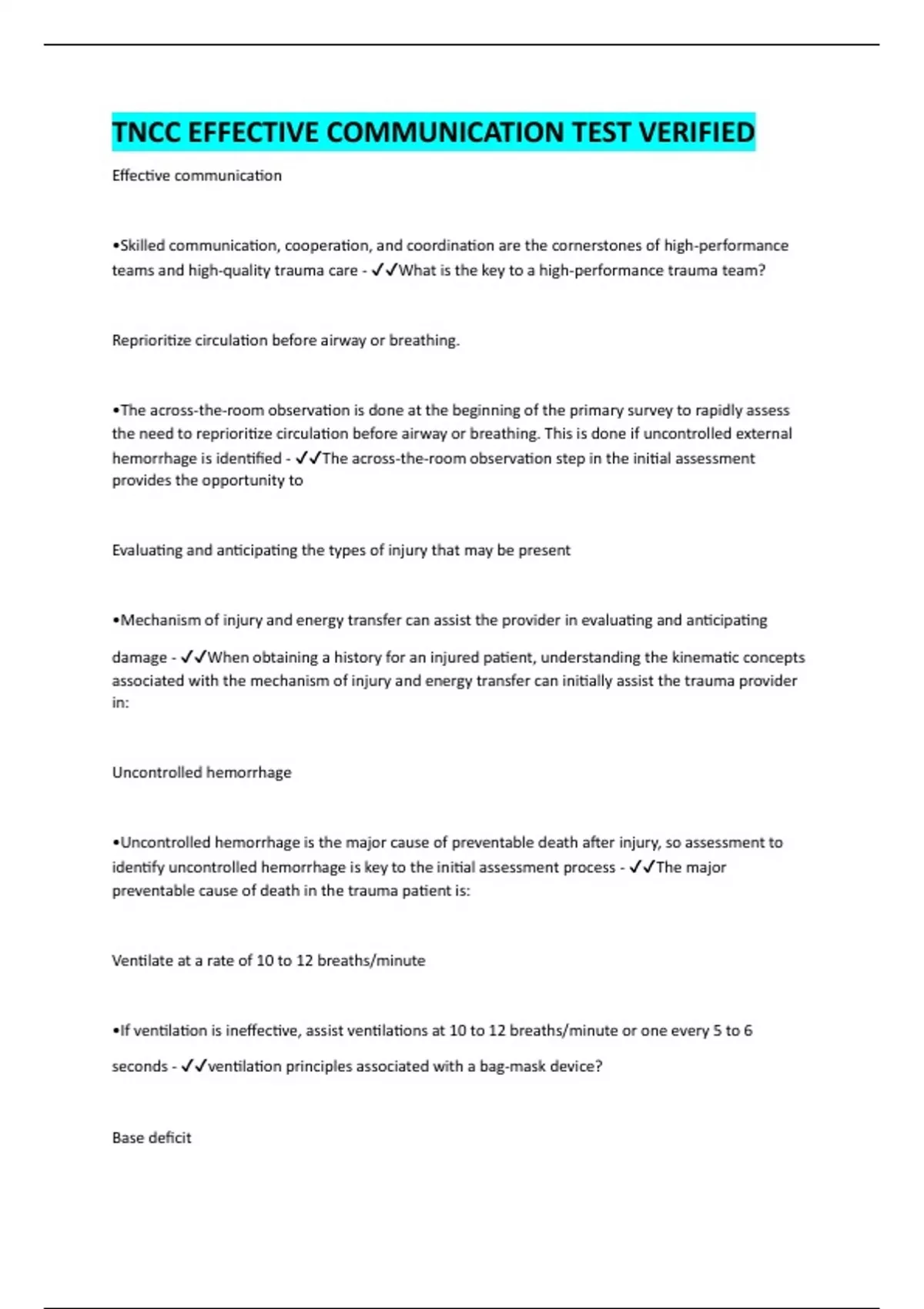 identify uncontrolled hemorrhage is key to the initial assessment process - ✔✔The major