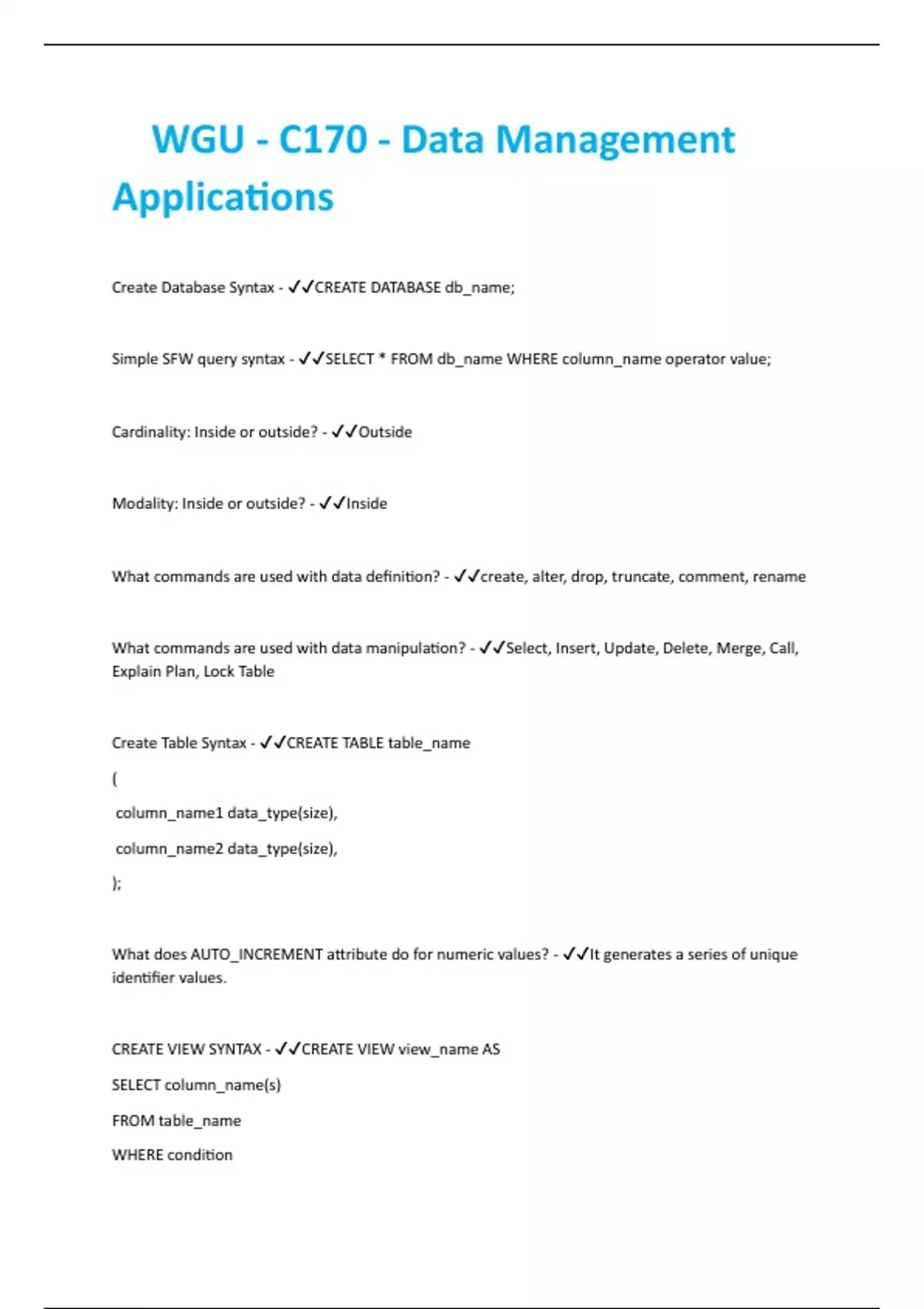 Create Table Syntax - ✔✔CREATE TABLE table_name