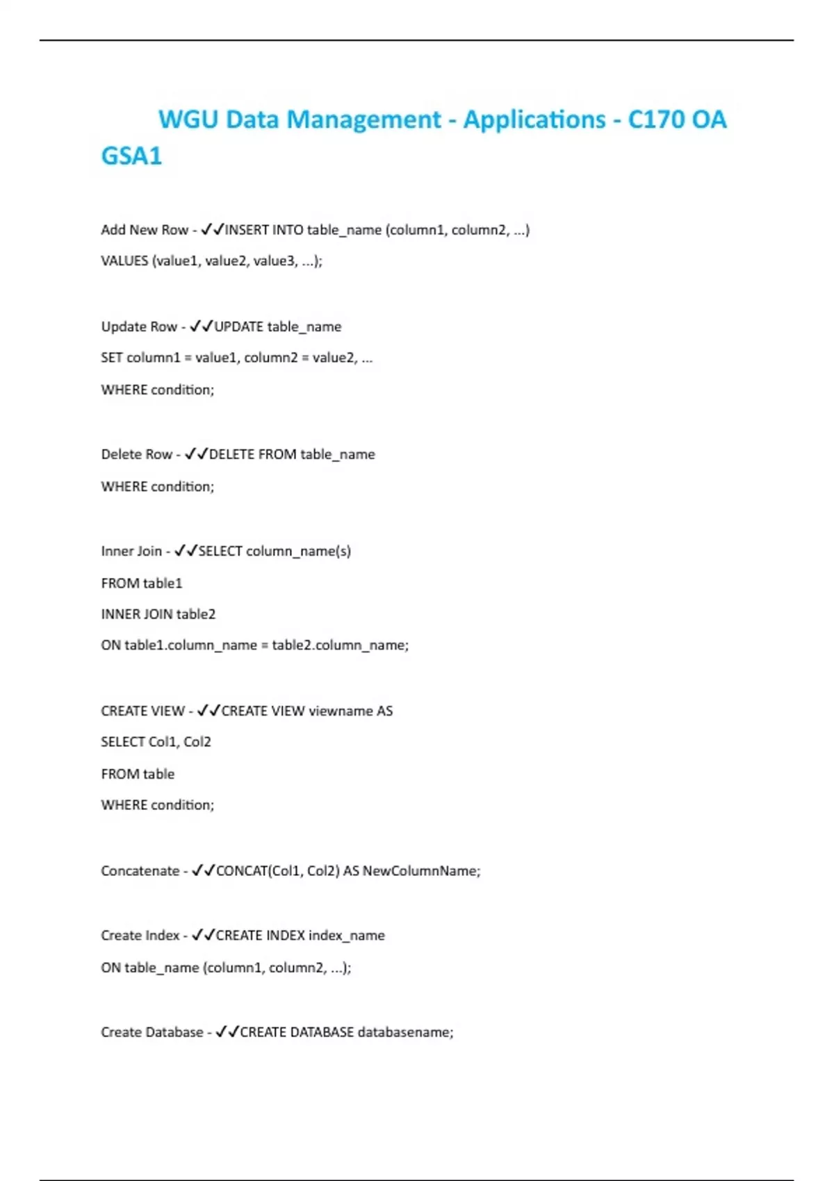 Concatenate - ✔✔CONCAT(Col1, Col2) AS NewColumnName;