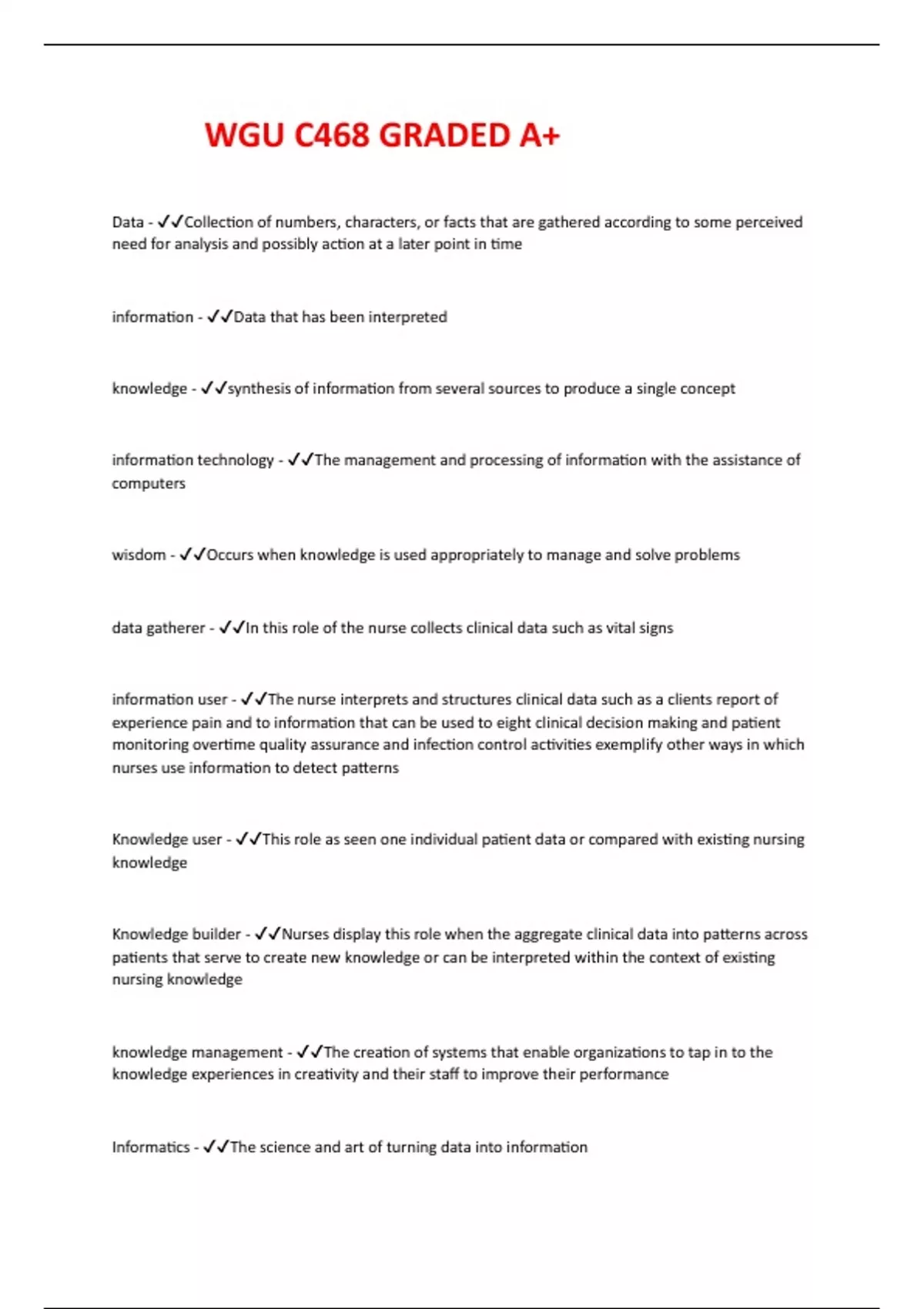 Nursing informatics - ✔✔Broadly defined as the use of information and computer technology to