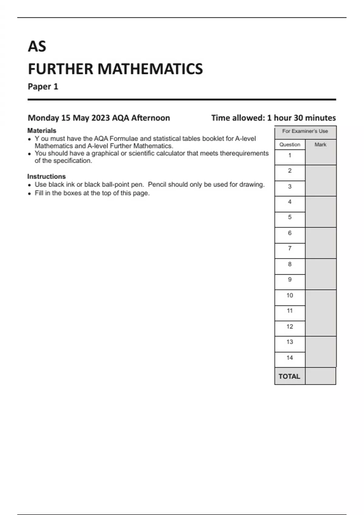 AQA AS FURTHER MATHEMATICS Paper 1&2 Questions Paper And Marking Scheme 2023