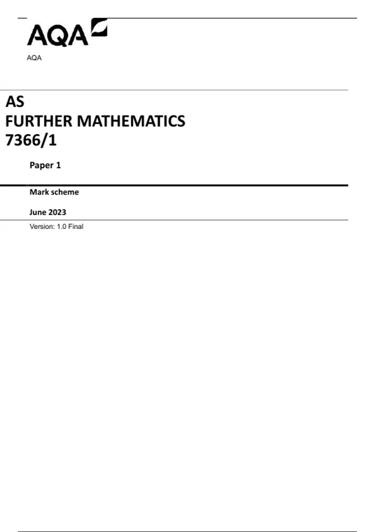 AQA AS FURTHER MATHEMATICS 7366/1 Paper 1 Mark scheme June 2023 Version: 1.0 Final