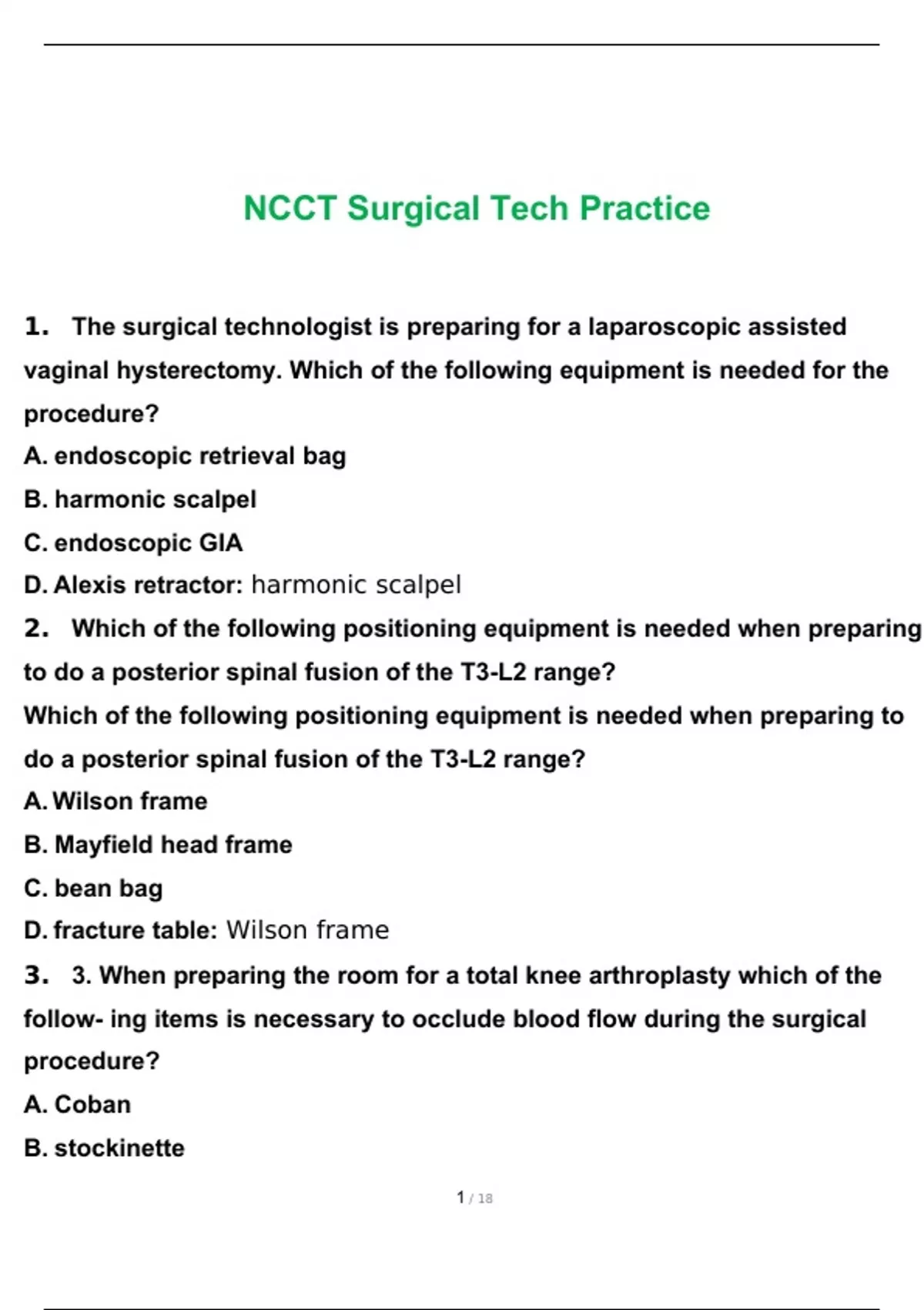 Tech in Surgery NCCT Practice Test with complete solutions/2022 Exam
