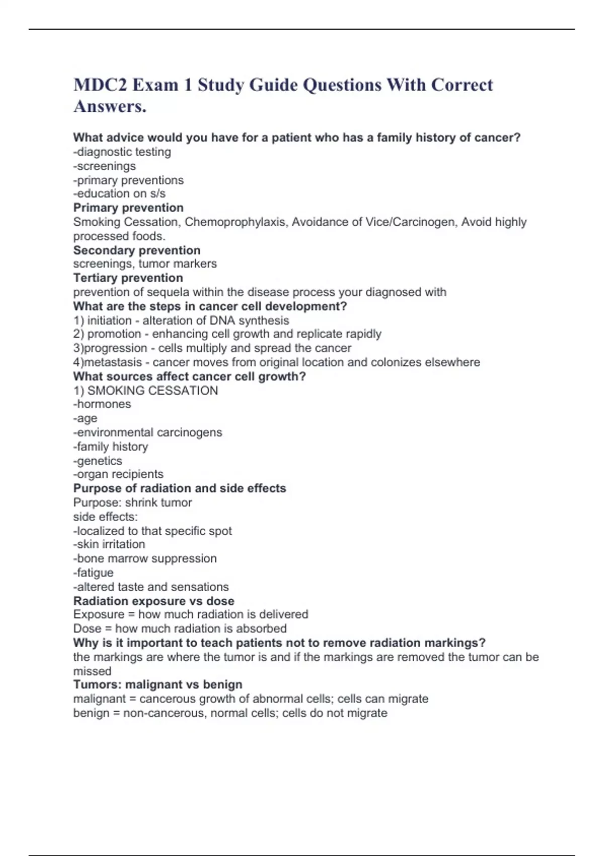 Tumors: malignant vs benign