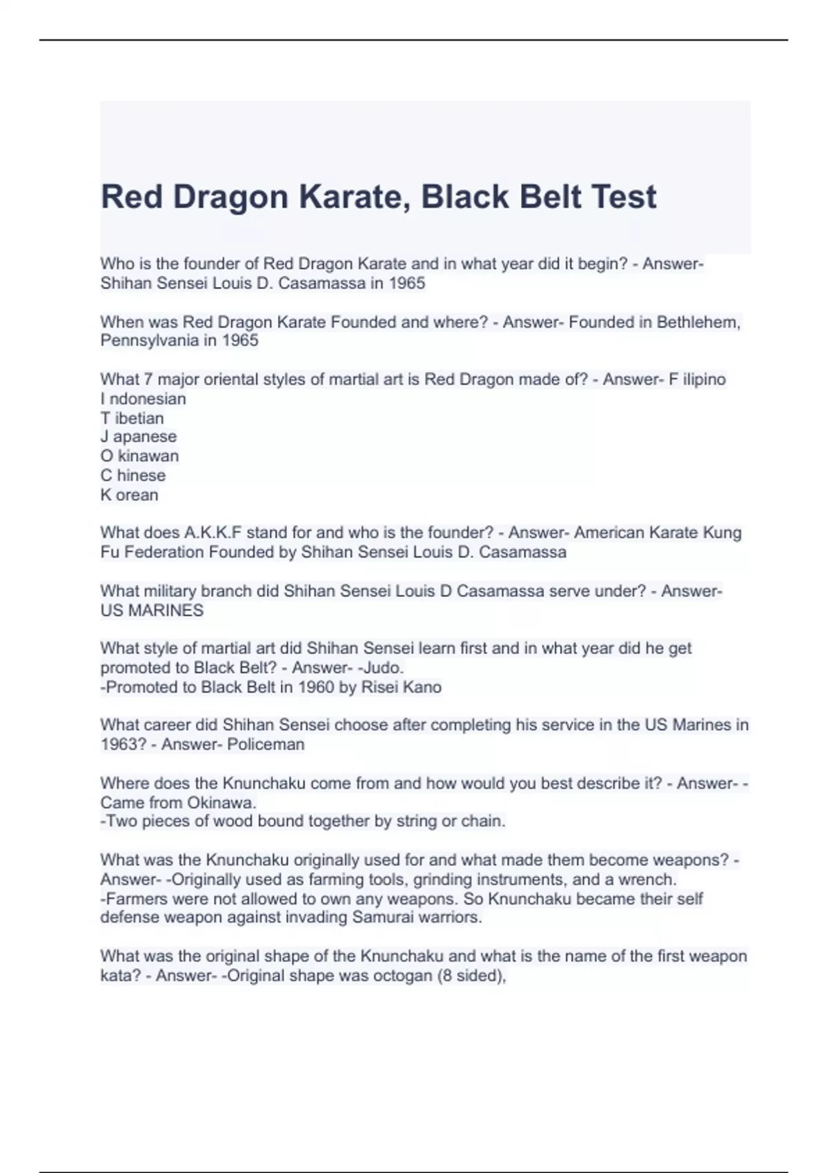 Red Dragon Karate, Black Belt Test-Solved