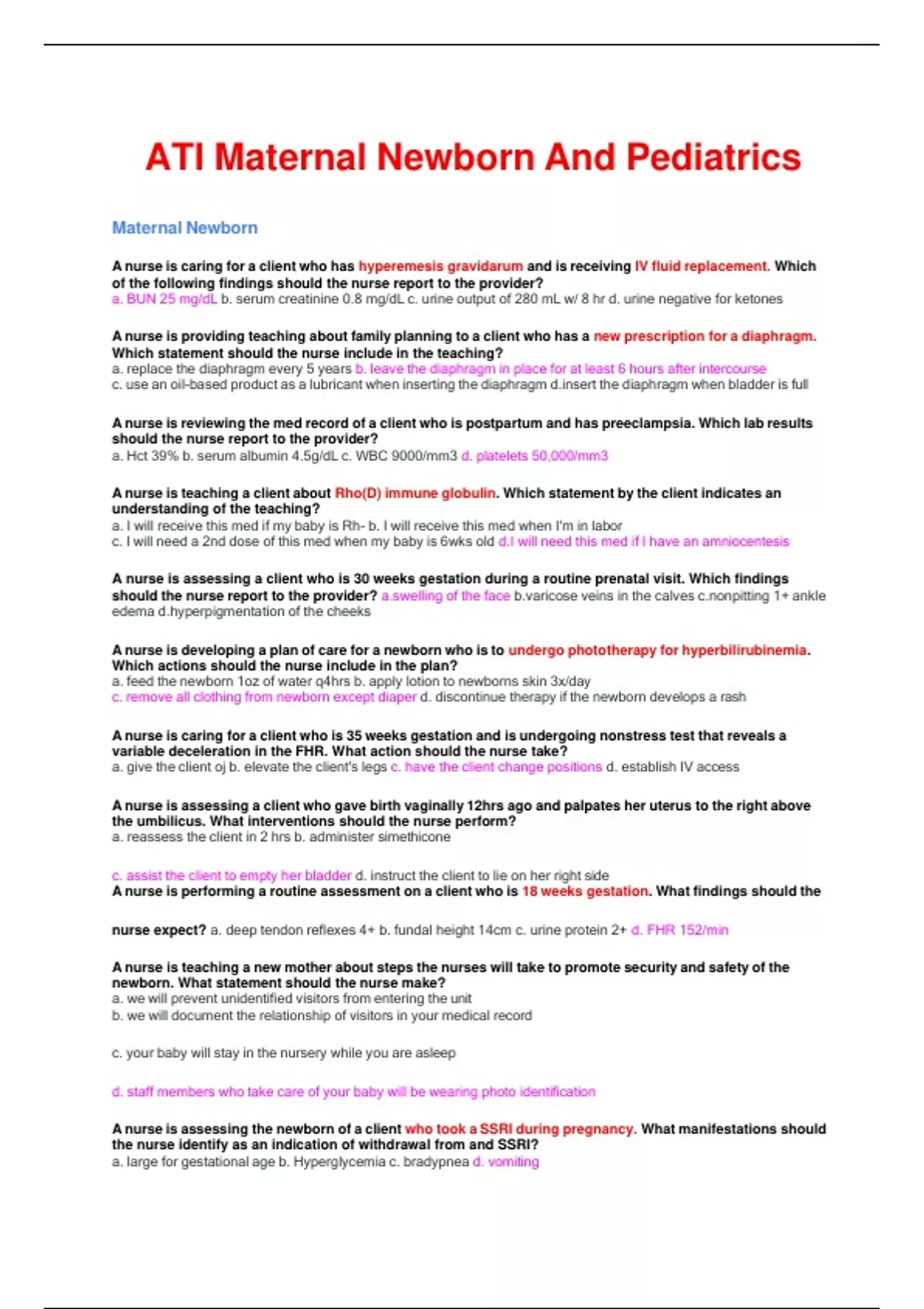 - ATI Maternal Newborn And Pediatrics